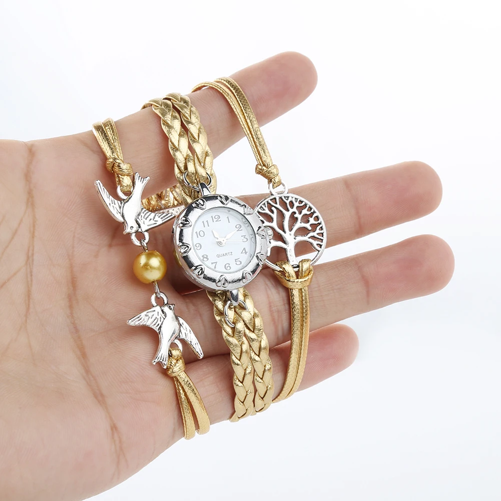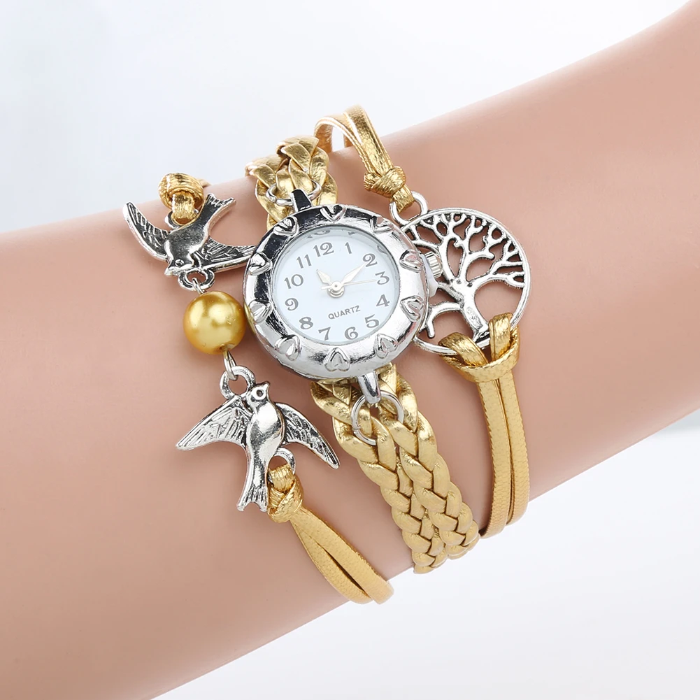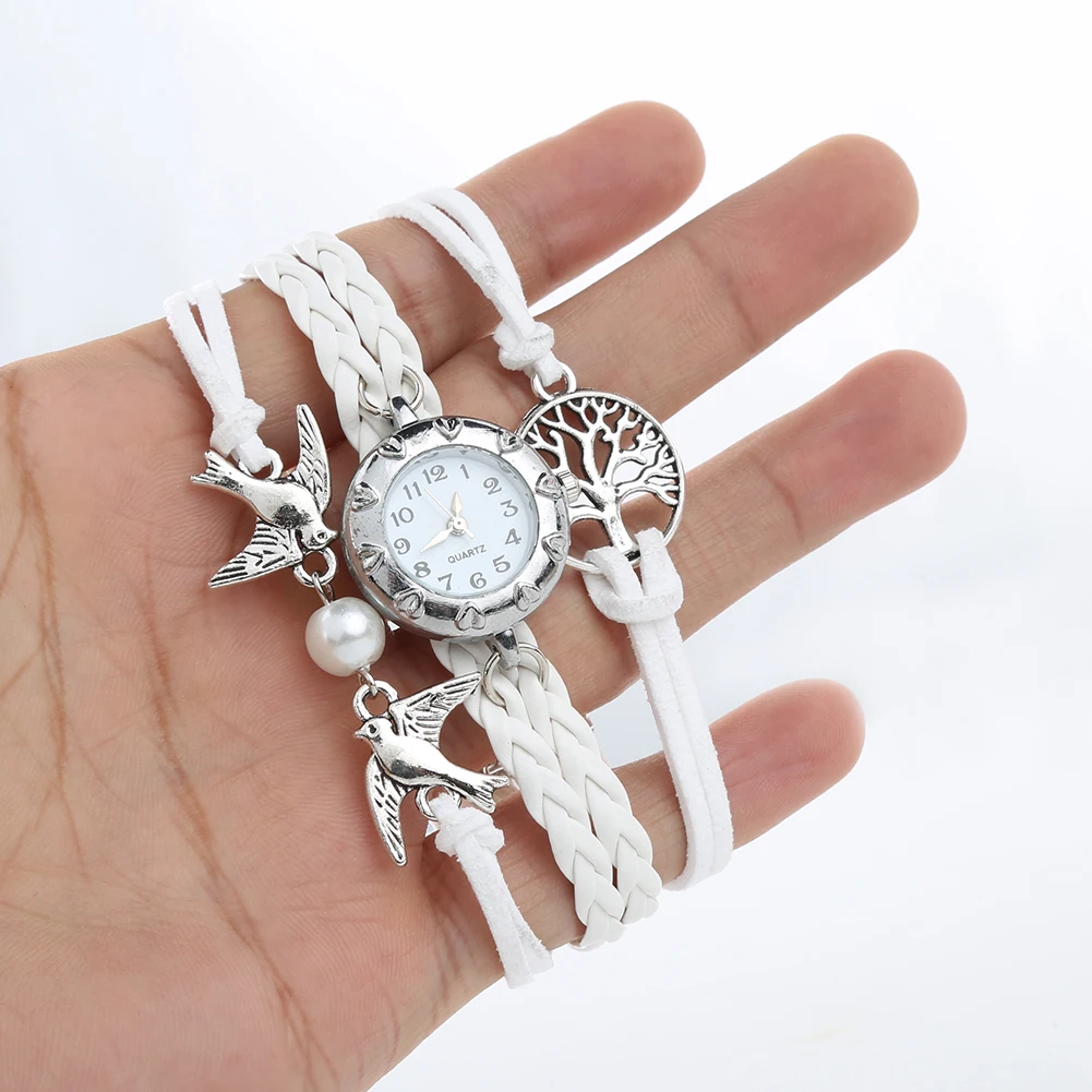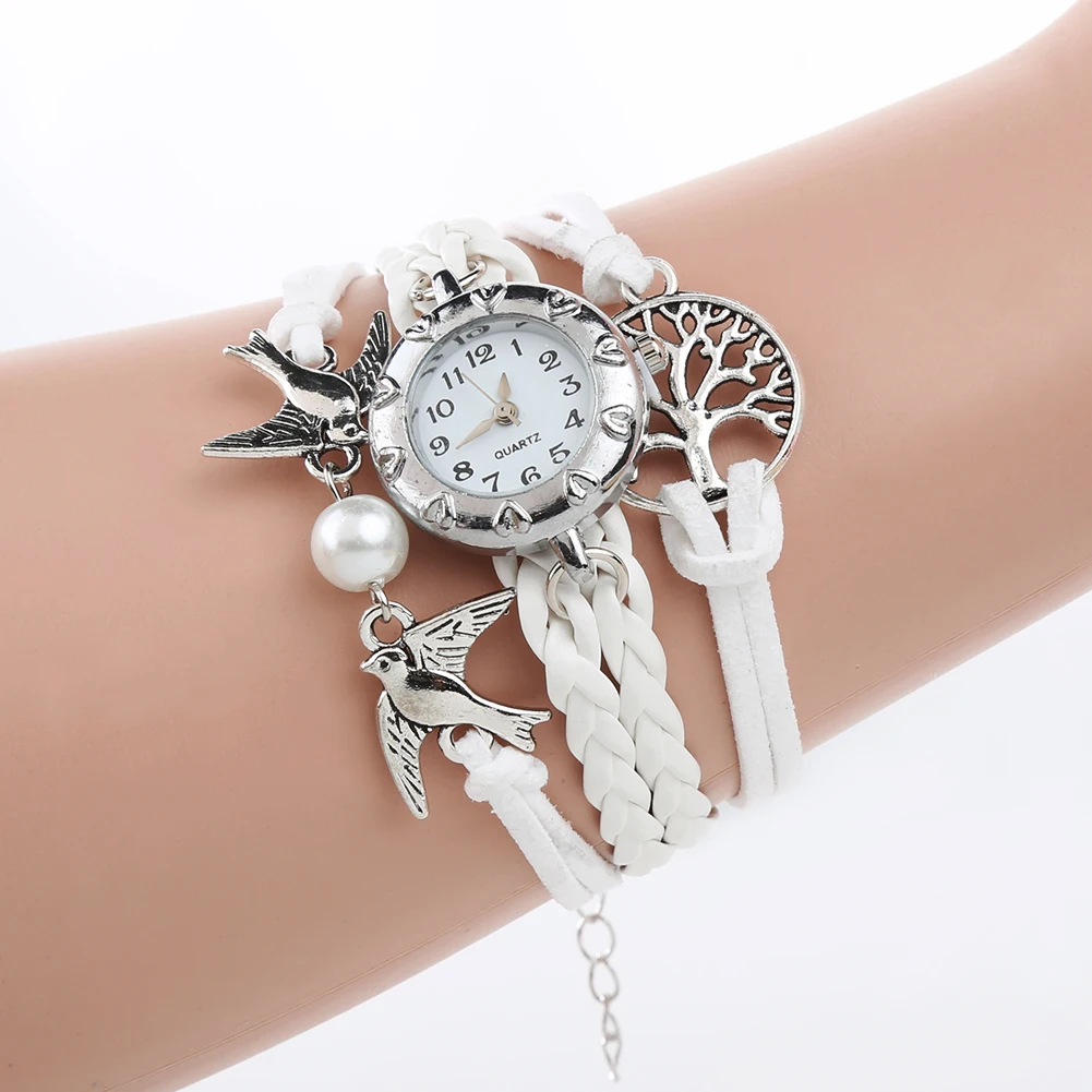 Пустое дерево жизни чары птиц декор и плетение искусственная кожа наручные часы, хорошая конструкция и привлекательный.