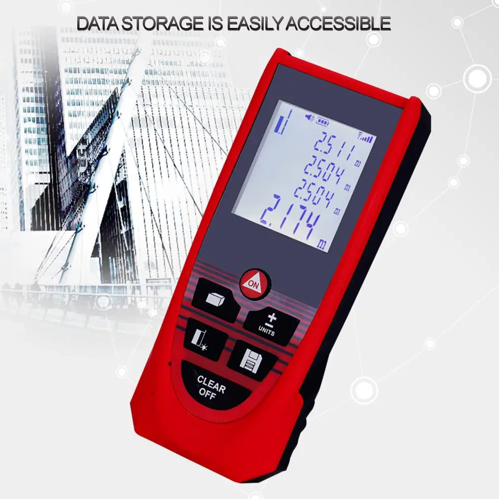 Простое и быстрое измерение: с несколькими режимами измерения, такими как расстояние, объем и площадь. Непрерывные измерения и измерения по пифагору, гарантирует вам быструю работу, идеально подходит для дома, строительства и промышленности, особенно в больших областях, таких как комнаты, квартиры, здания, недвижимости, фабрики, склады, И так далее