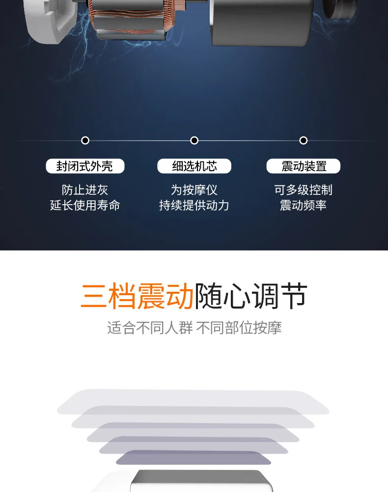 2. Трехступенчатый контроль температуры и трехступенчатая Регулировка вибрации, постоянный нагрев температуры
