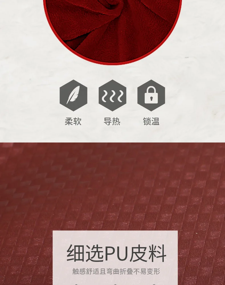 1. Тонкий выбор полиуретановой кожи, чувствовать себя комфортно, и сгибание не легко деформируется, внутренний слой кашемира, мягкий и удобный, передача тепла быстро