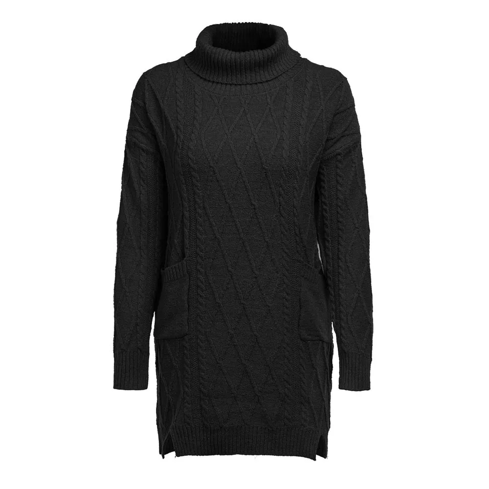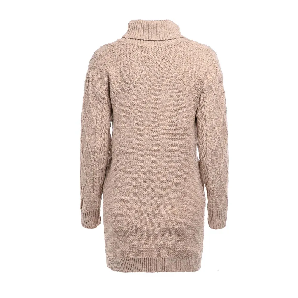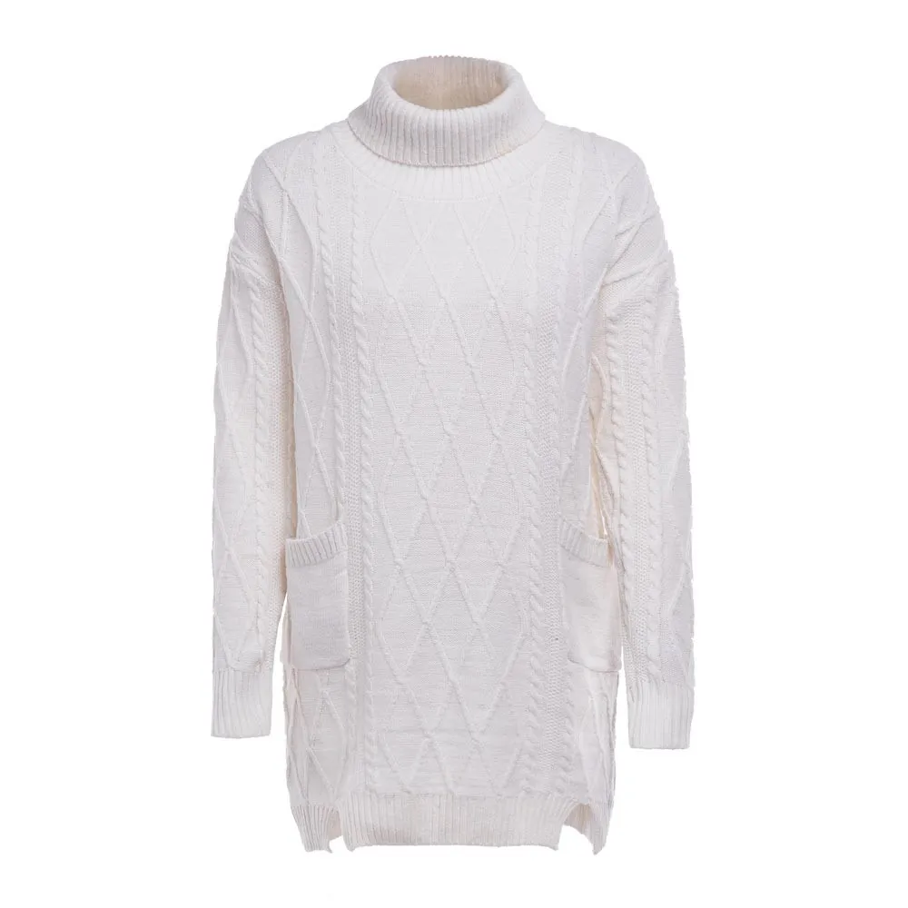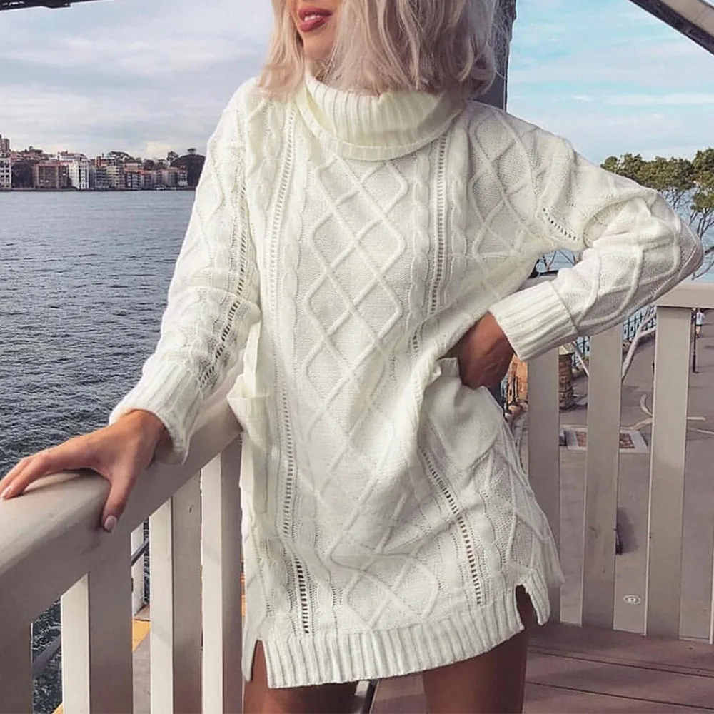 Женский зимний свитер, вязаная водолазка, теплое платье с длинным рукавом и карманом, сексуальное мини-платье