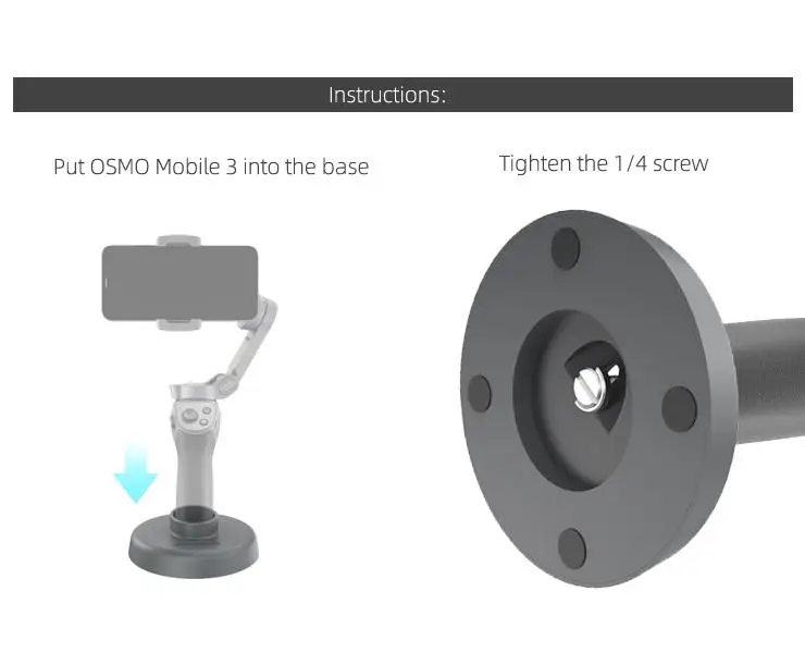 Вставьте OSMO Mobile 3 в основание и поверните его на 1/4"