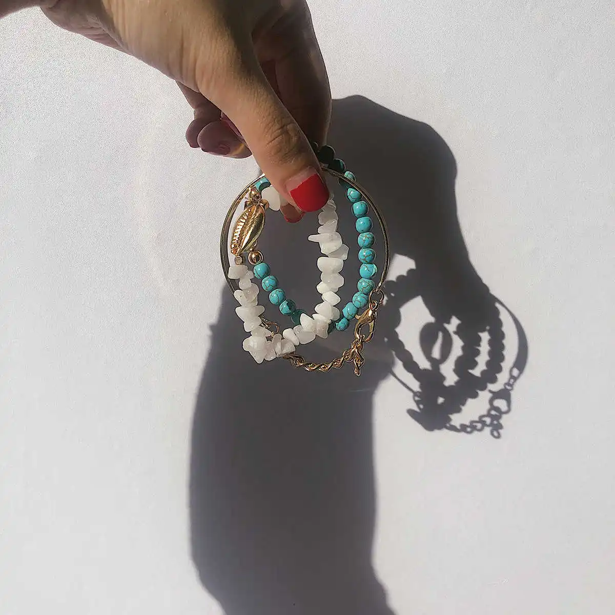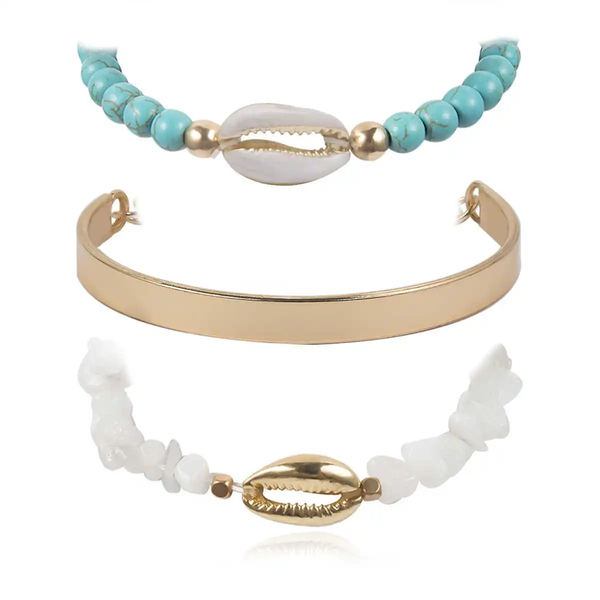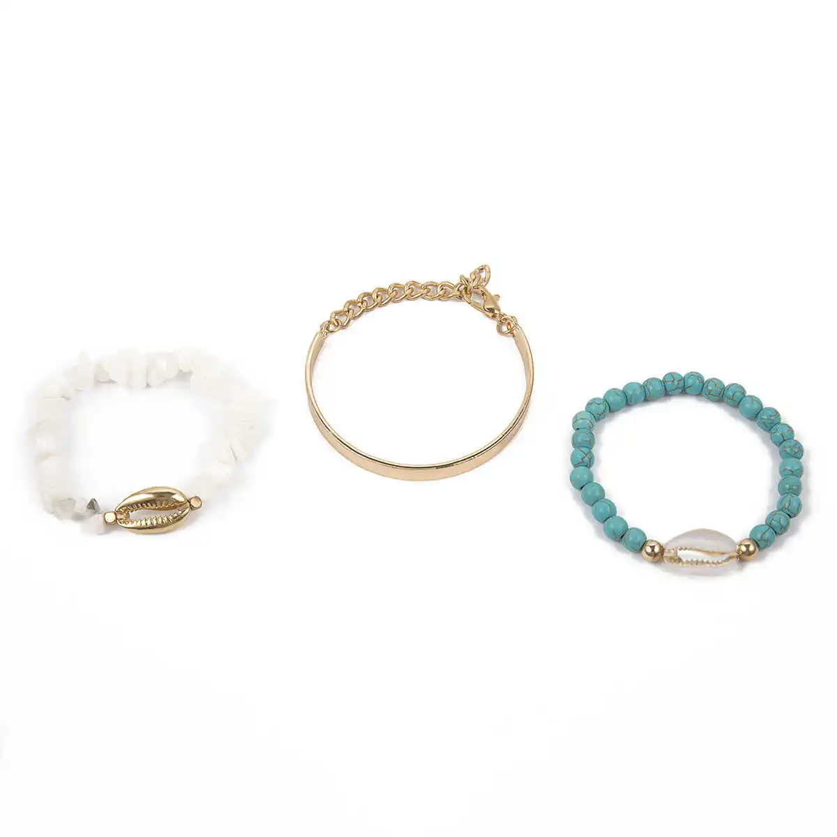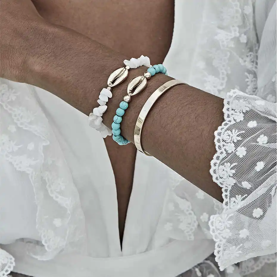 Название: Lacteo 3 шт./компл. браслет из богемной натуральной цепочки камней, браслет из золотого сплава, браслет с подвеской в виде морской раковины, Женские Ювелирные изделия Цвет: Золотой Вес: 34,1 г Стиль: 3 шт./компл. браслет из натуральной цепочки камней в богемном стиле Повод: вечерние/Подарки/Повседневная жизнь Материал: натуральные камни/сплав Размер: как на картинке