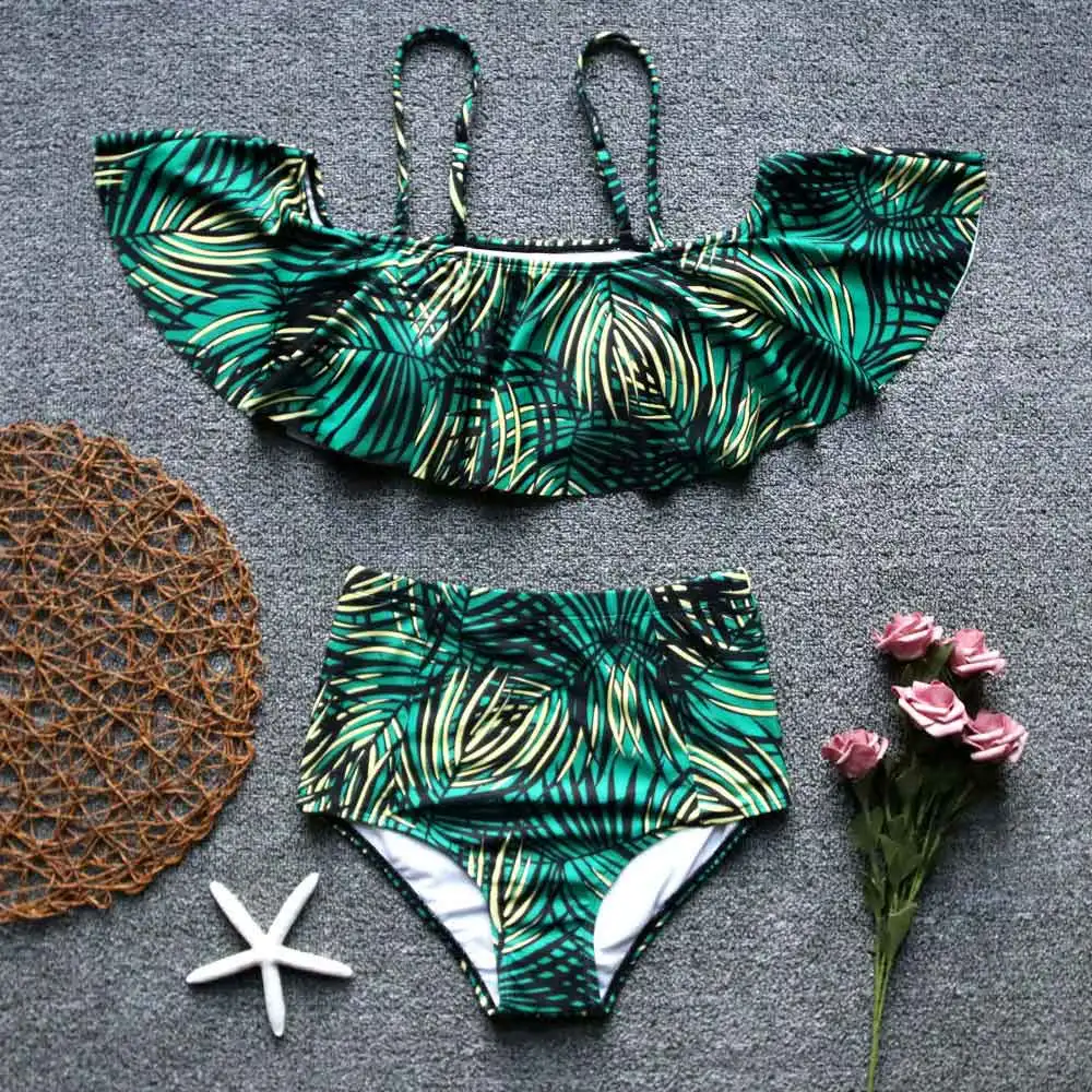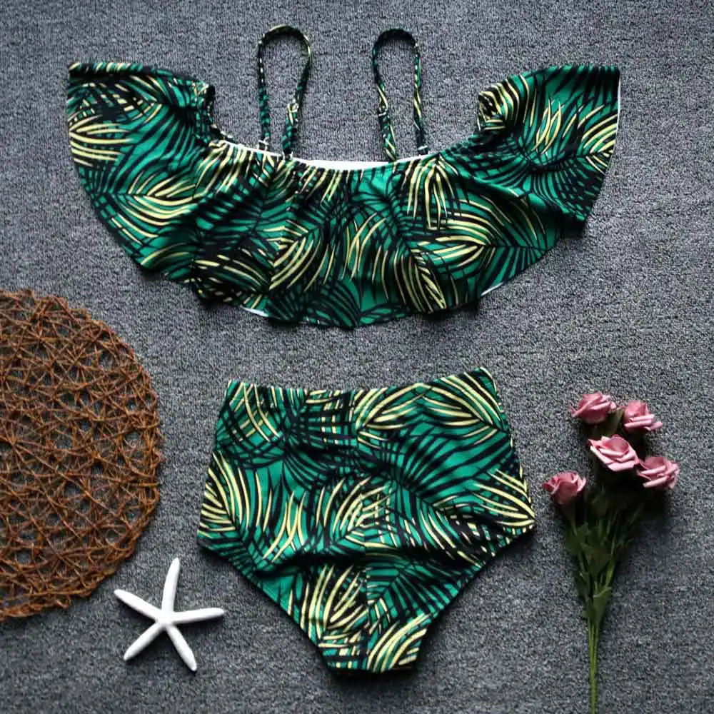 Бикини с оборками 2019, бикини с высокой талией, женский купальник с принтом, Женский Одноцветный купальник, сексуальный бандо, пляжная одежда для женщин, Traje De Bano