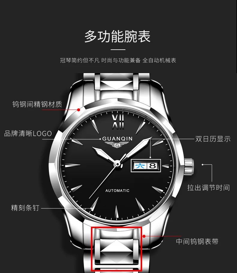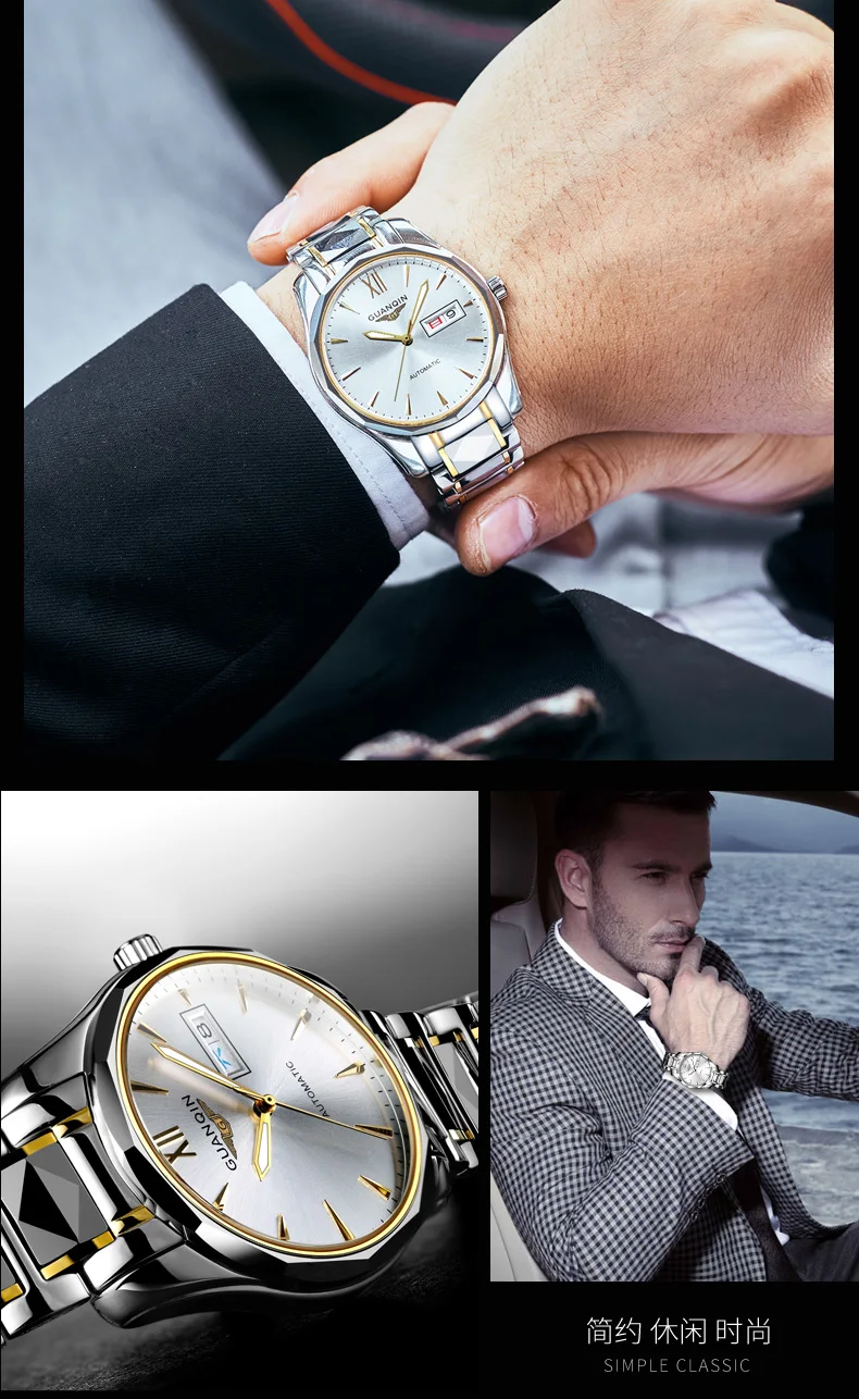 Мужские многофункциональные механические наручные часы Reef Tiger Aurora
