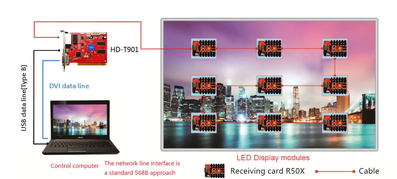 Заводская цена huidu T901 отправка карты HD-T901 DVI Входная карта управления для полноцветного видео светодиодный экран