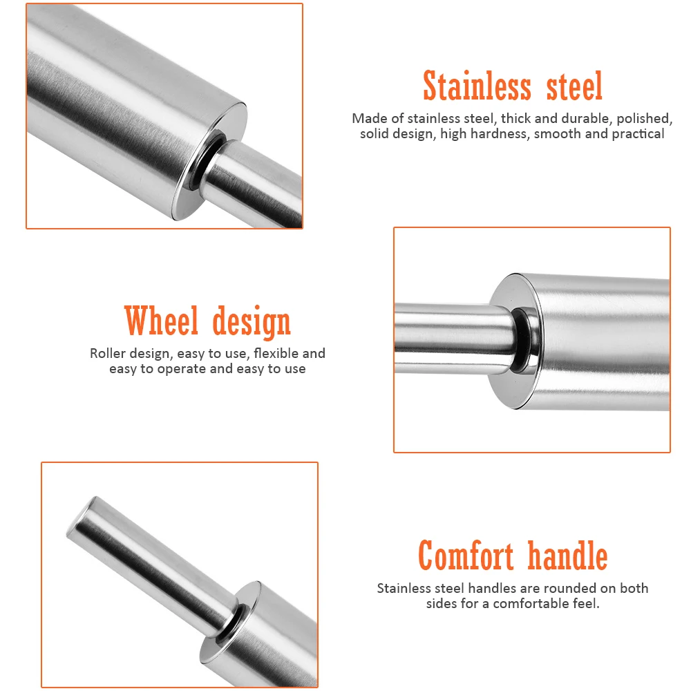 Легко Применение:Ролик из нержавеющей стали и ручки из нержавеющей стали двигаются независимо. Отлично подходит для работы с более тонким, фланцевым тестом.