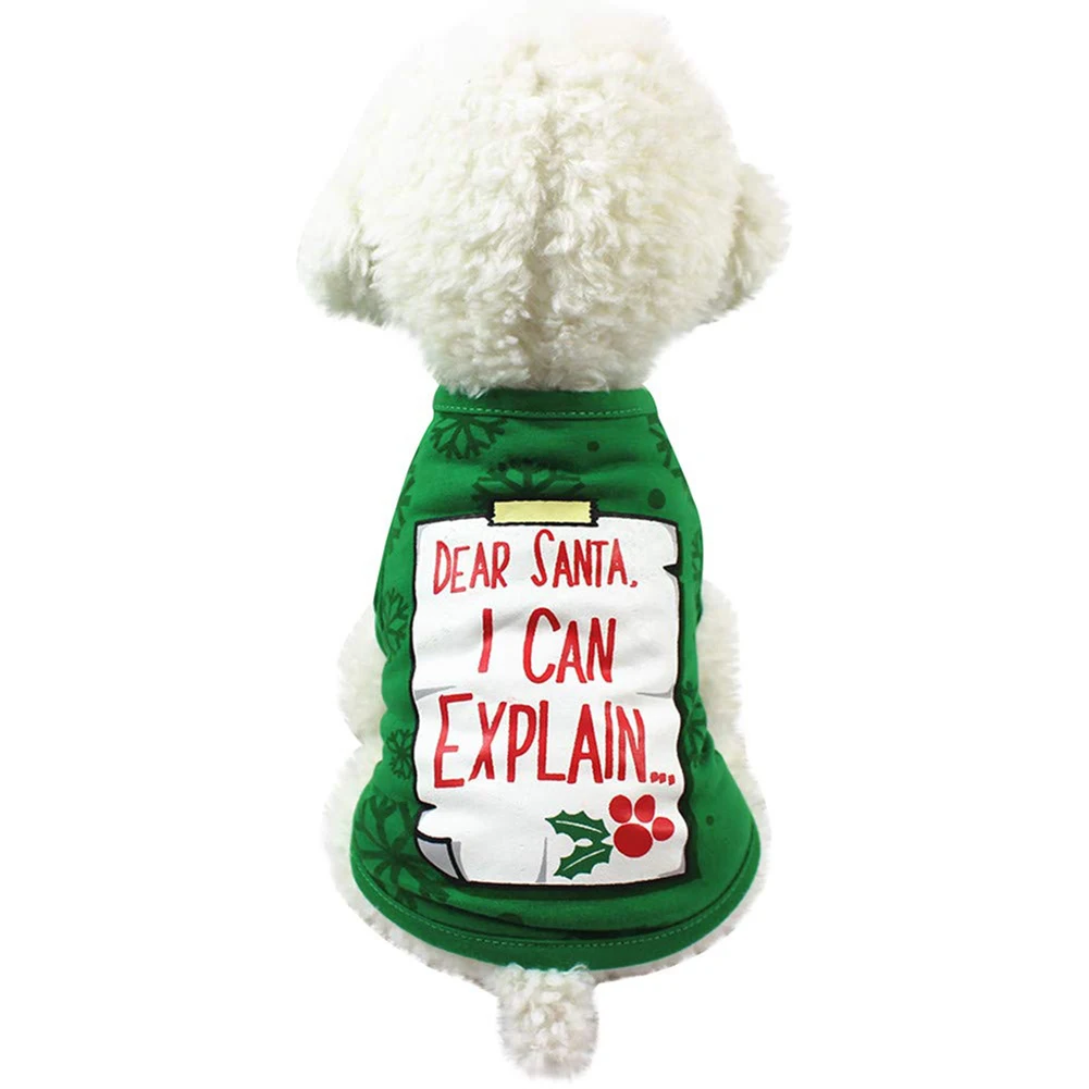 Рождество для питомца щенка кота Одежда для собак милый костюм с буквенным принтом футболка одежда