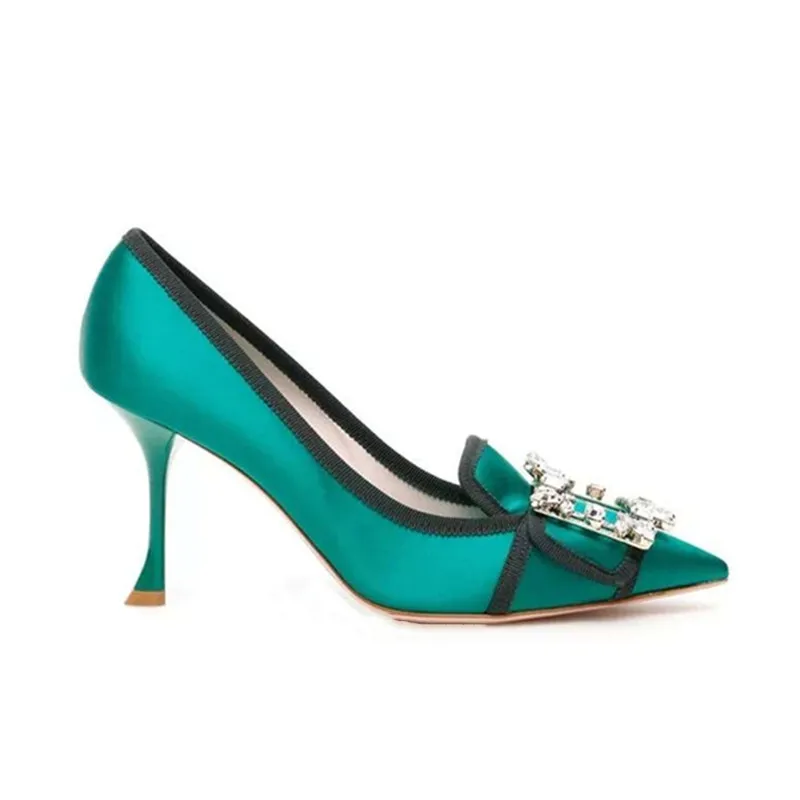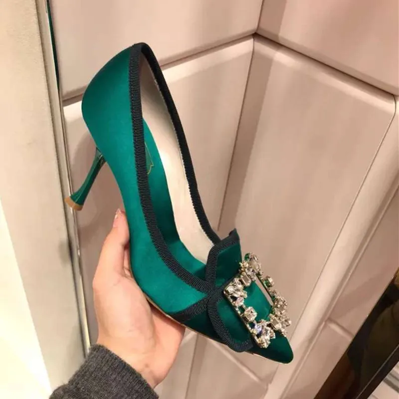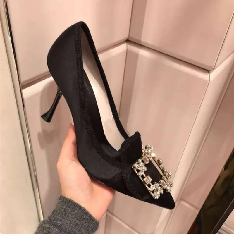 Женские свадебные туфли-лодочки со стразами и пряжкой; туфли на высоком каблуке-шпильке из сатиновой кожи с острым носком; zapatos de mujer; 2019 femme; 6 см