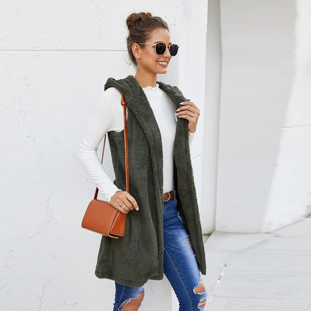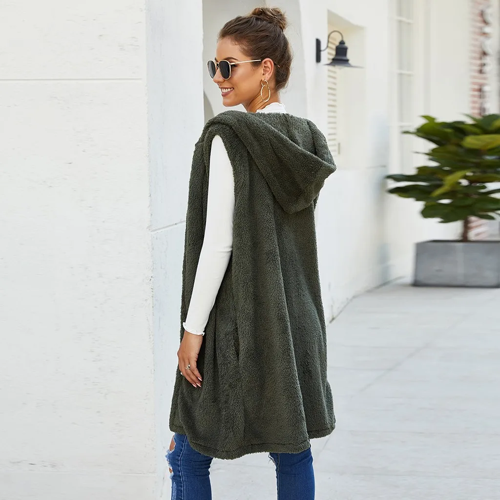 Womens Vest Winter Warm Hoodie Sleeveless Outwear Casual Coat Sherpa Jacket