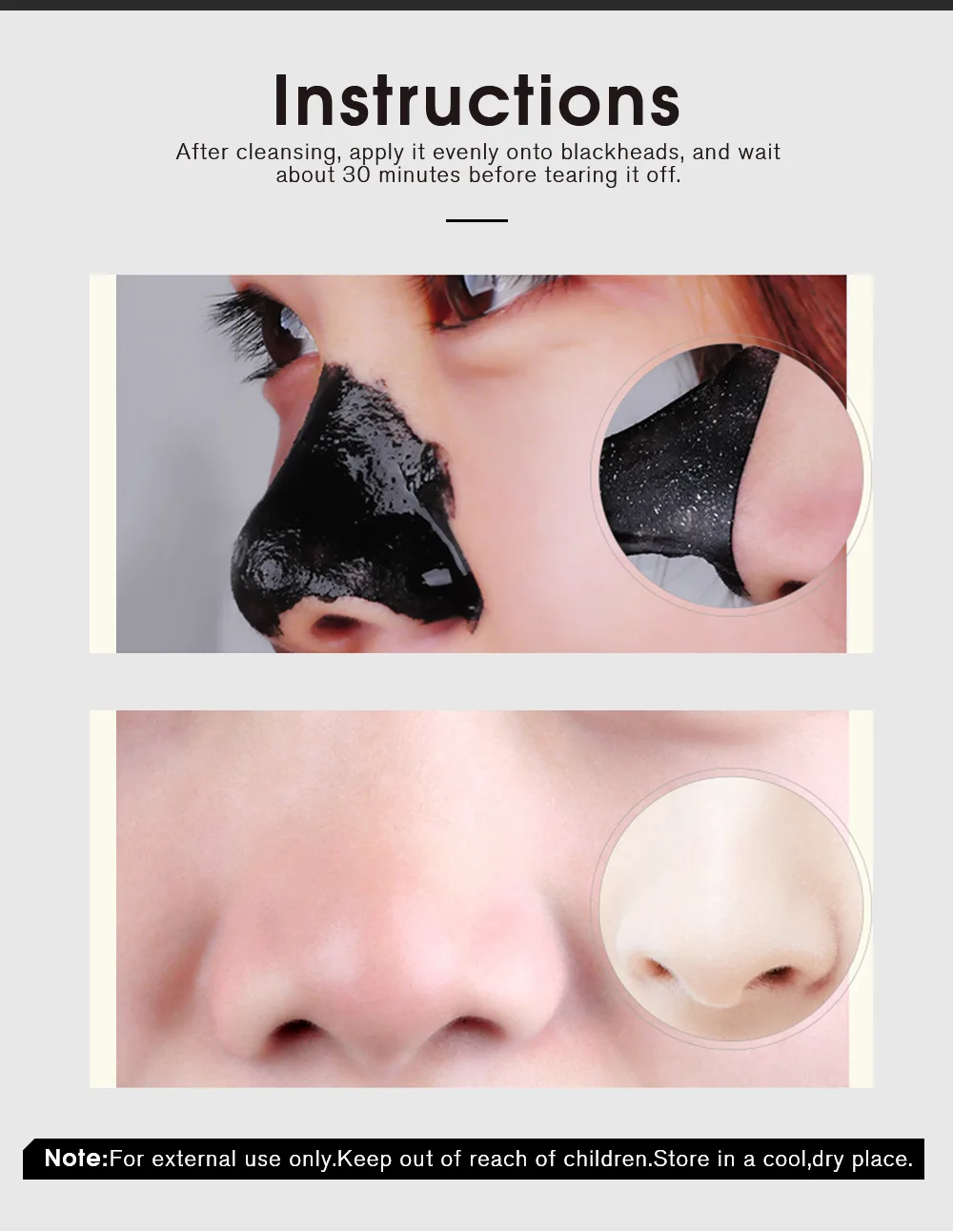 2) После откачивания кожи удалите Носовую Маску С Черной головкой и аккуратно нанесите ее на нос (Не используйте слишком много силы при нанесении носовой маски). Используйте кончики пальцев, чтобы сделать мембрану ближе к носу, примерно через 20-30 минут. Носовая мембрана полностью высыхает и удаляется снизу вверх. Если есть еще черные предметы, вытрите их бумажным полотенцем или промойте водой!