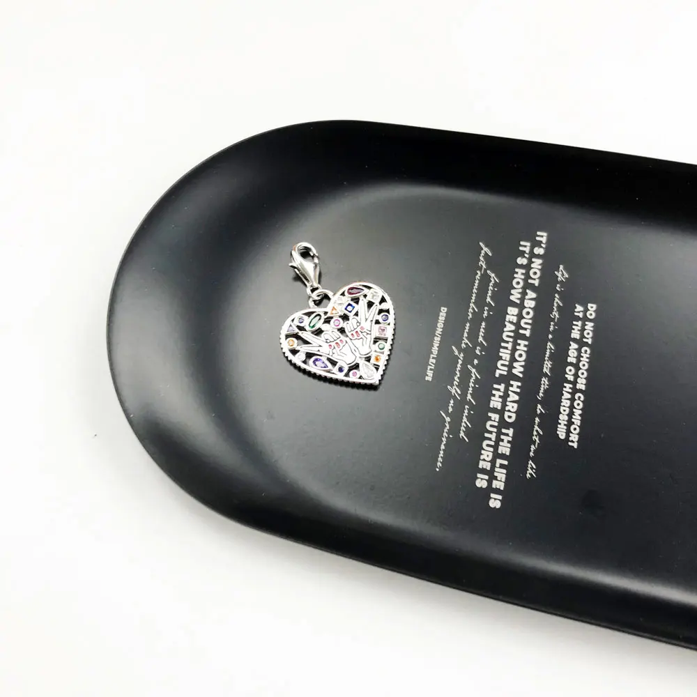 Знак победы, подвеска в виде сердца, серебро 925 пробы, CZ, для браслета, ожерелья, аксессуары, сделай сам, ювелирные изделия для женщин и мужчин