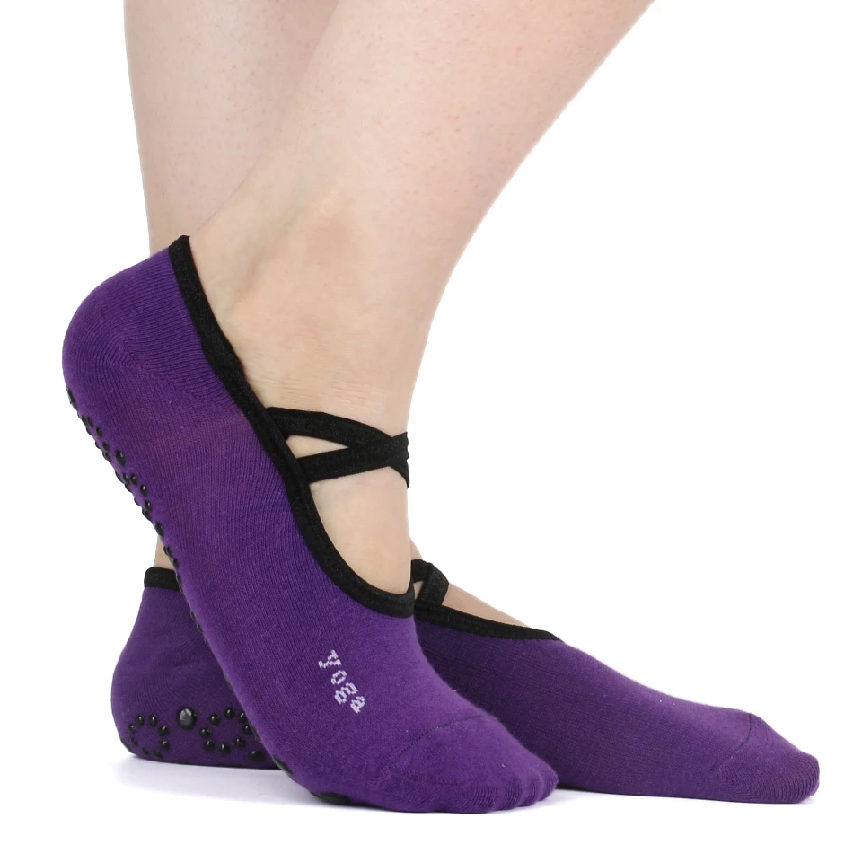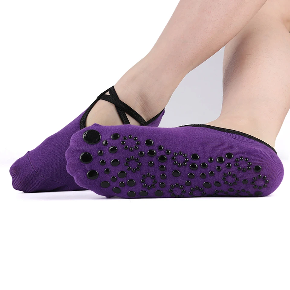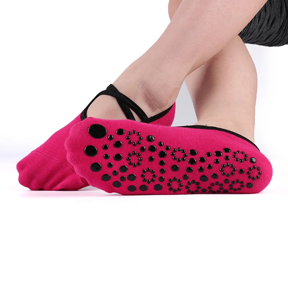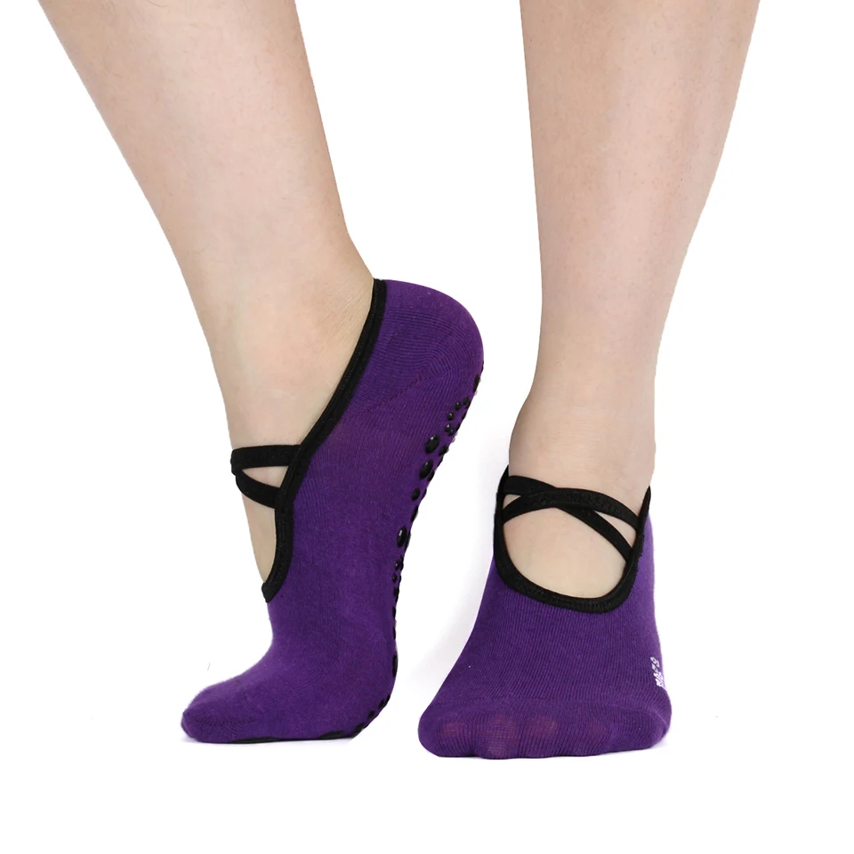 2.These Yoga and Pilates socks with non skid silicone grips on the bottom are distributed evenly from heel to toe, they prevent you from skidding on wood studio floors, no more worrying about slipping. Sexy ballet slipper straps on the top, They don't slide around on your feet, soft ,breathable.