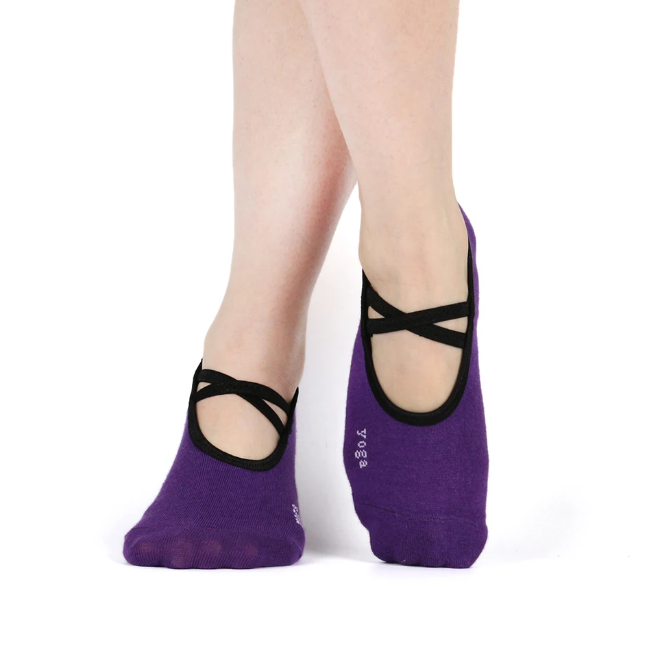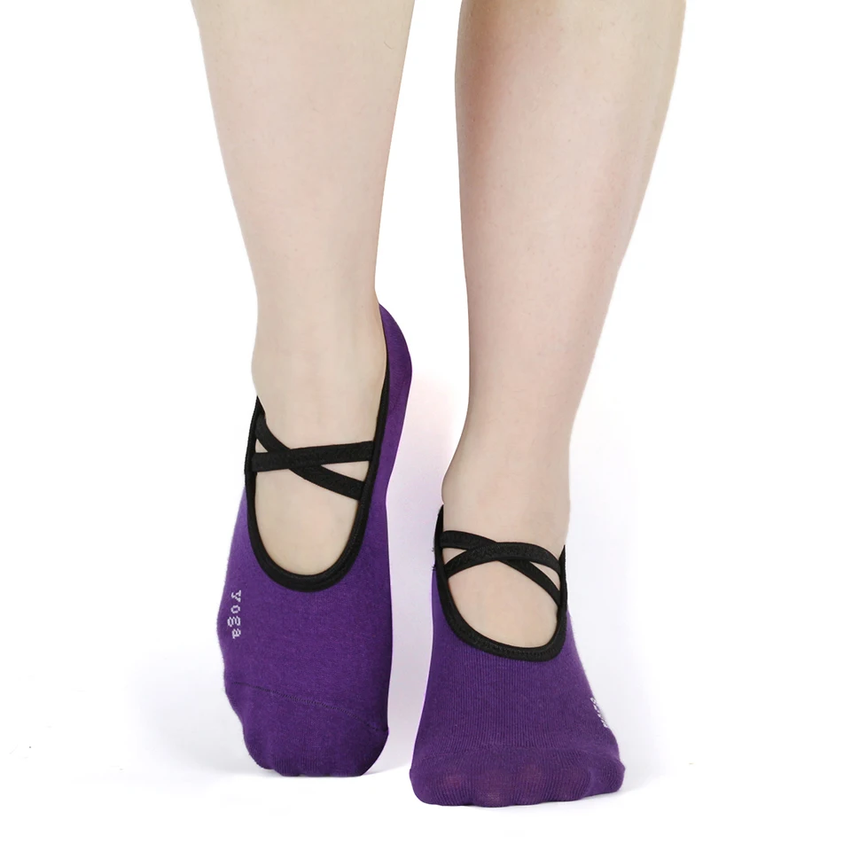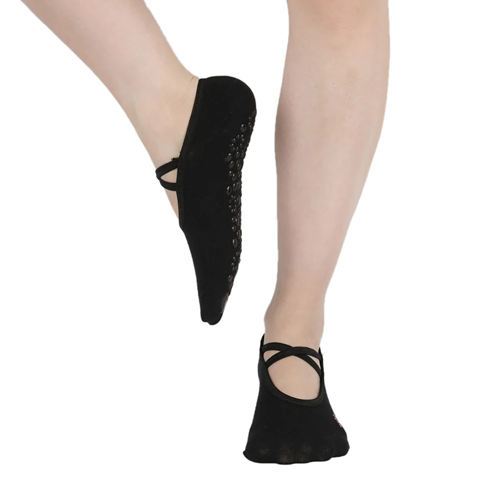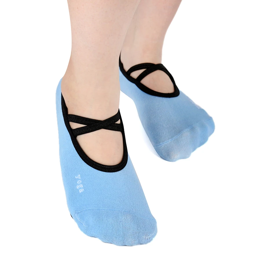 2.These Yoga and Pilates socks with non skid silicone grips on the bottom are distributed evenly from heel to toe, they prevent you from skidding on wood studio floors, no more worrying about slipping. Sexy ballet slipper straps on the top, They don't slide around on your feet, soft ,breathable.