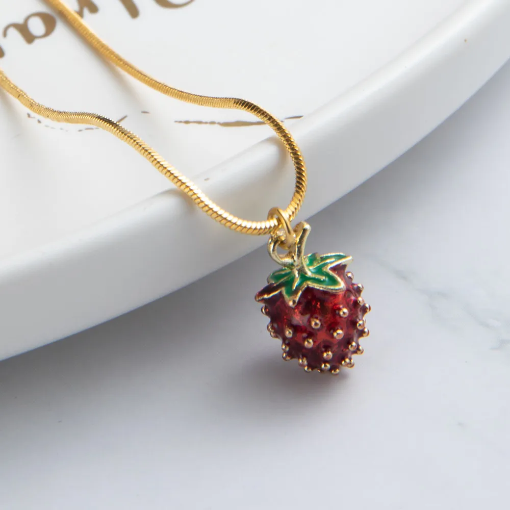 Романтический Милый изящный изысканный кулон клубника ожерелья для женщин и девочек свадебные Помолвочные ювелирные изделия рождественские подарки Материал: медный сплав/золото Размер: как на картинке