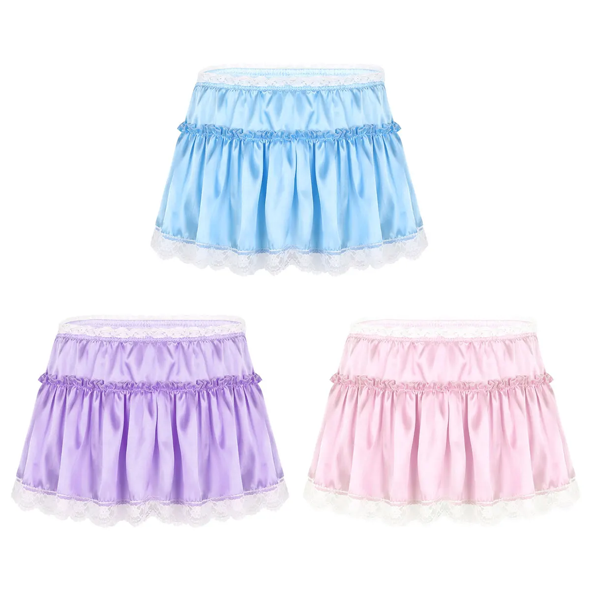 Атласная мини-юбка с оборками для мужчин и взрослых, однослойная юбка-мини, надеваемая на застежку.
