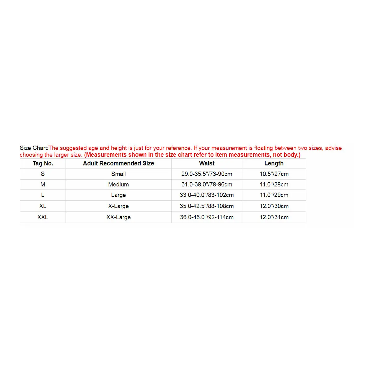 | Размер на бирке. | Взрослый рекомендуется Размеры | Обхват талии | Длина |