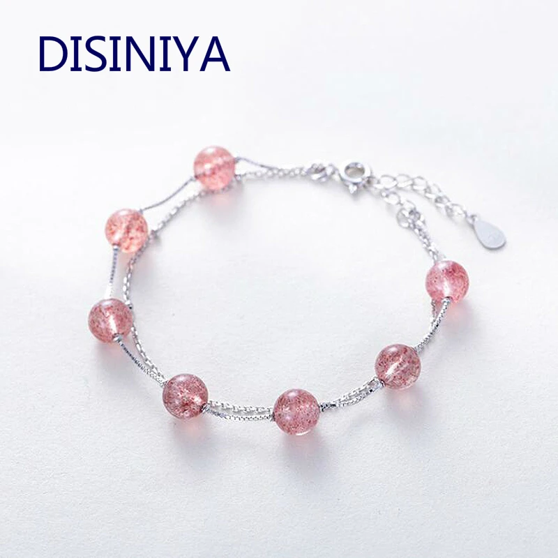 Женский двухслойный браслет DISINIYA, браслет из серебра 925 пробы с натуральным розовым камнем и клубничным кристаллом, счастливое очарование для девушек SSL7067