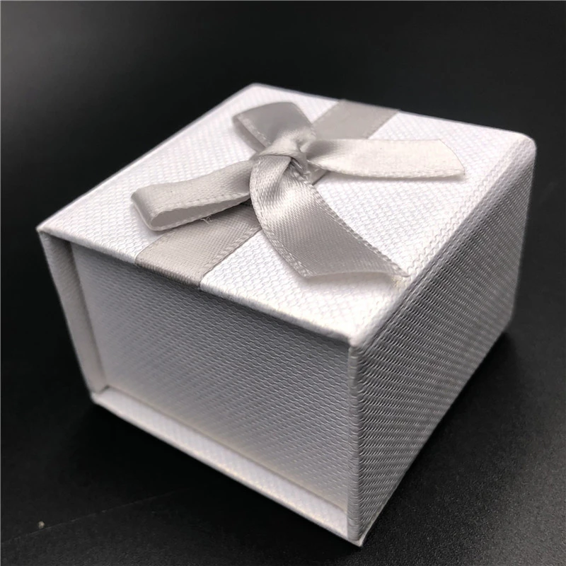 DISINIYA Кольцо Серьги Коробка Ювелирных Изделий Бумажная серая белая лента бант подарочное кольцо серьги Упаковка Дисплей 5*5*3,5 см, 1 штука