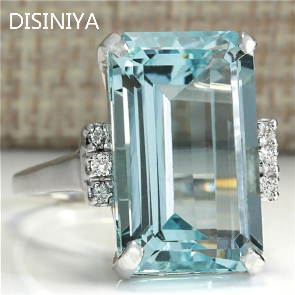 Женское кольцо с кристаллами DISINIYA, элегантное кольцо с большими морскими синими стразами, свадебные вечерние кольца для невесты, ювелирные изделия JZ46183