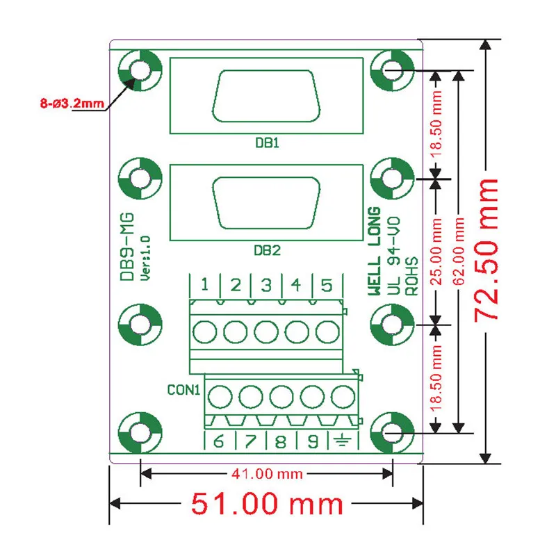 D-SUB DB9 штыревой/гнездовой секционная плата, клеммный блок, разъем.