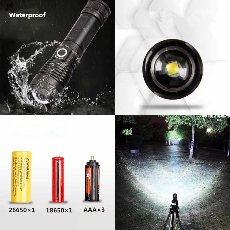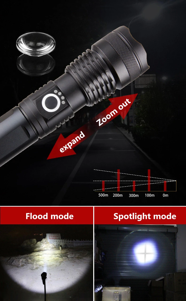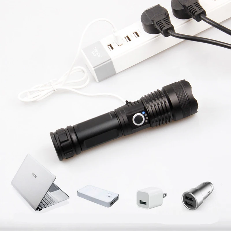 Название: XHP50.2 фонарик Модель светодиодных осветителей: XHP50.2 Материал корпуса: алюминиевый сплав Материал линз: выпуклая линза Цвет излучения: белый свет Тип батареи: 1*18650 перезаряжаемая батарея или 2*18650 аккумуляторная батарея Зарядное устройство: Micro usb
