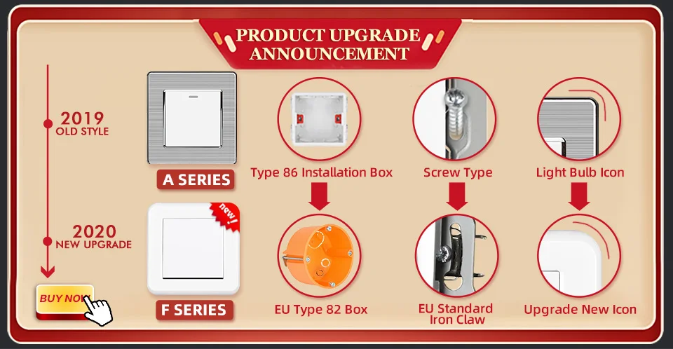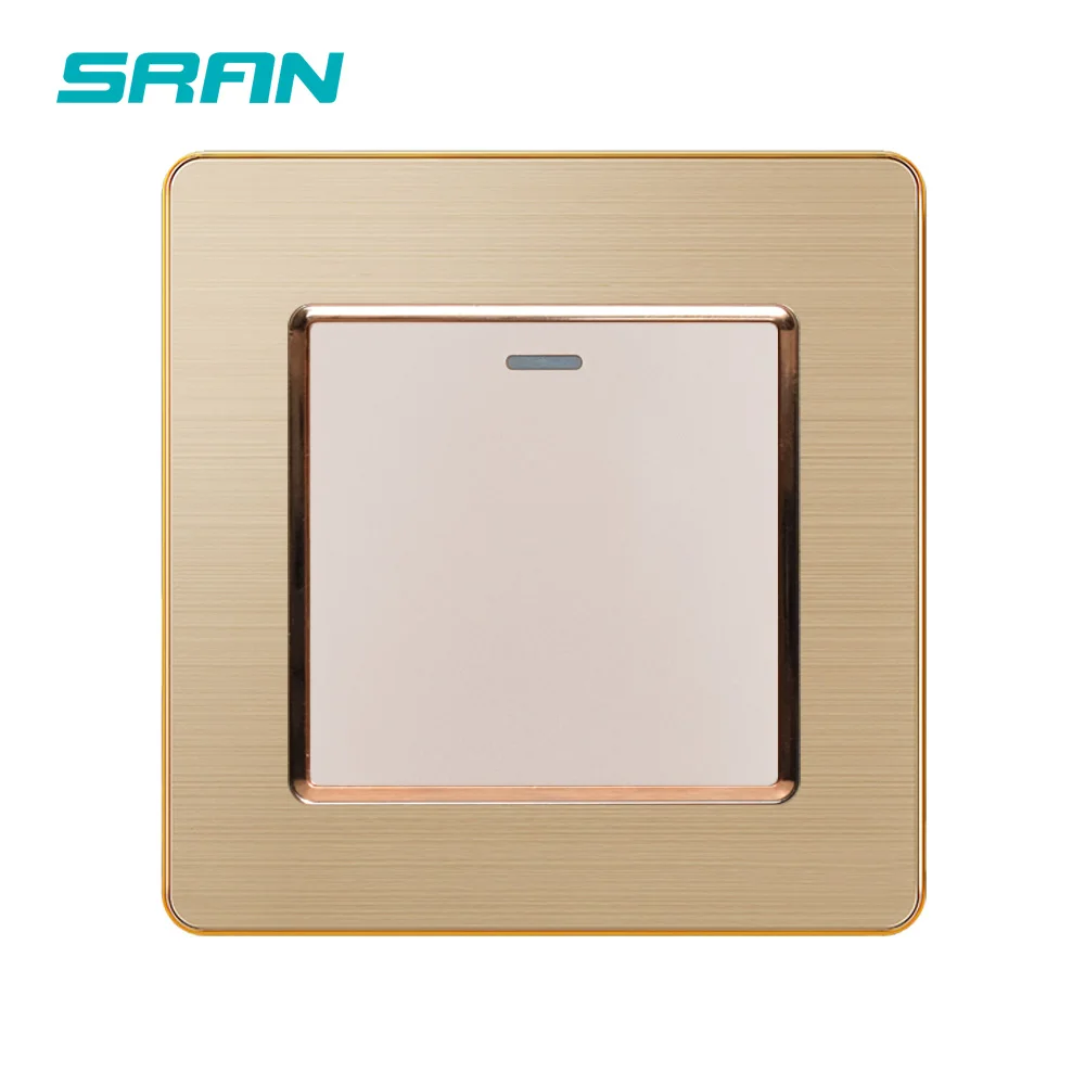 1 позиционный кулисный переключатель (86 мм * 86 мм) 250V 16A со светящейся ленты Панель из нержавеющей стали с посеребренными краями Белый/черный/золотой