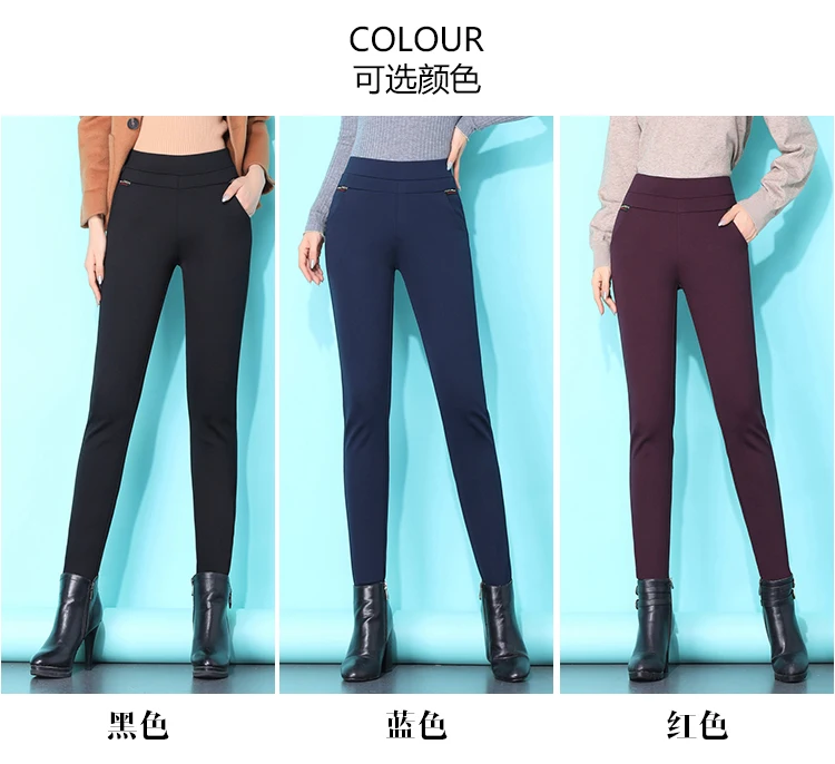 Деловые повседневные узкие брюки женские зимние теплые обтягивающие больших