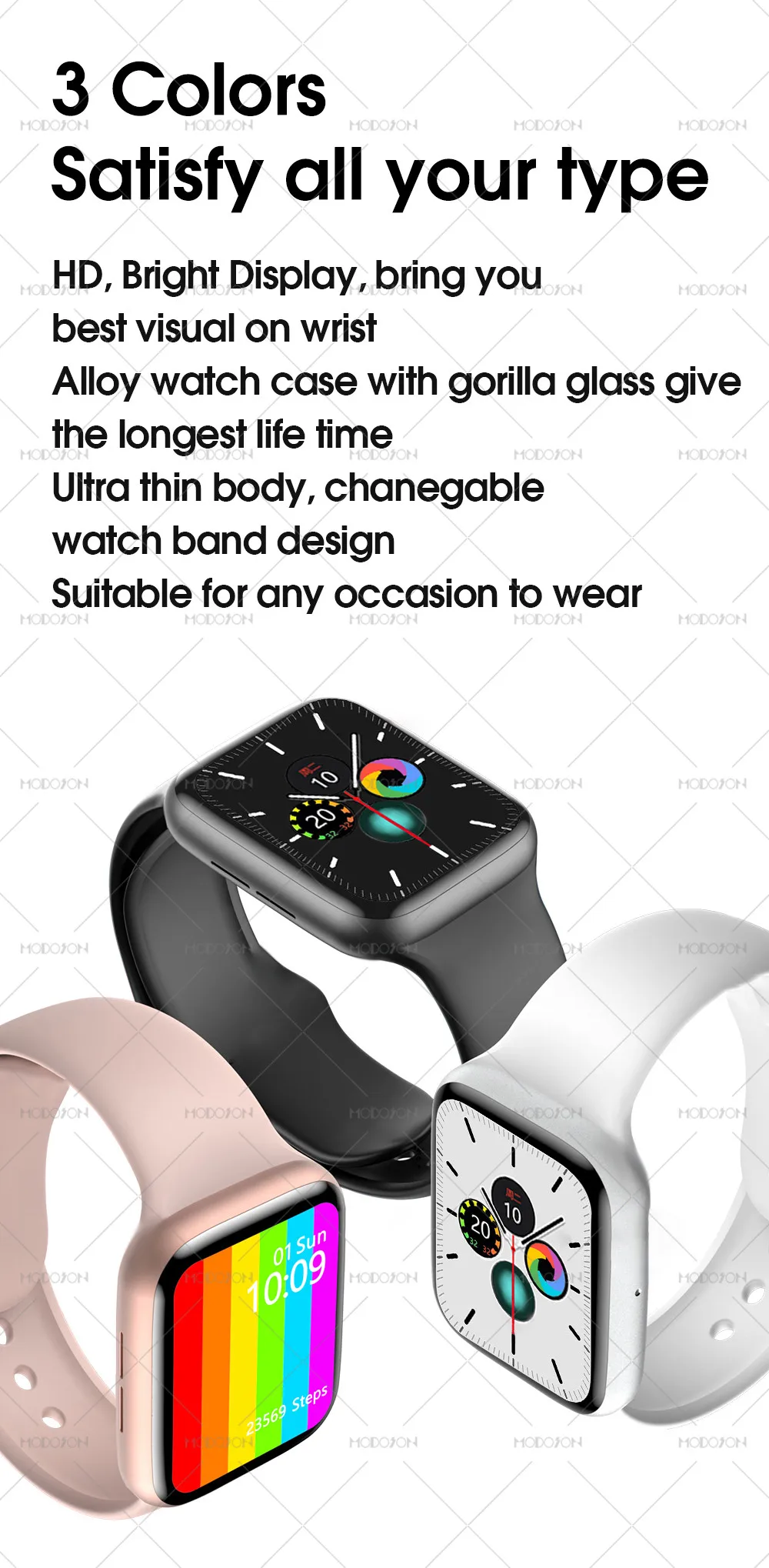 Часы серии 6Дизайн внешнего вида.Сбоку часов красная круглая шапка.1,75 дюймов 320*385 пикселей Full Экран HD сенсорный Экран.Ремешок часов можно заменить.Если вы хотите увидеть более реальное изображение, пожалуйста, отправьте мне сообщение.