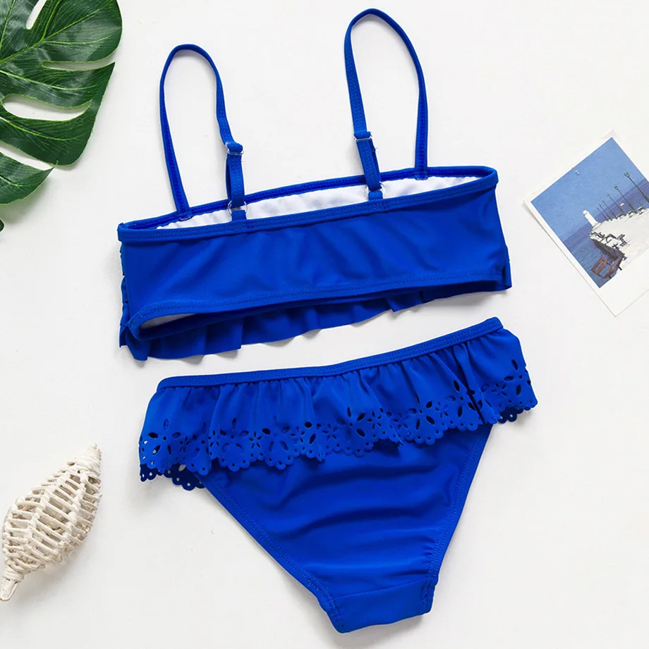 5-14 Years Teenage Girl Bikini Set Hollow Out Girl Swimsuit Kids Swimwear Ruffle Big Girl Bathing Suit 2 Piece Children Swimwear