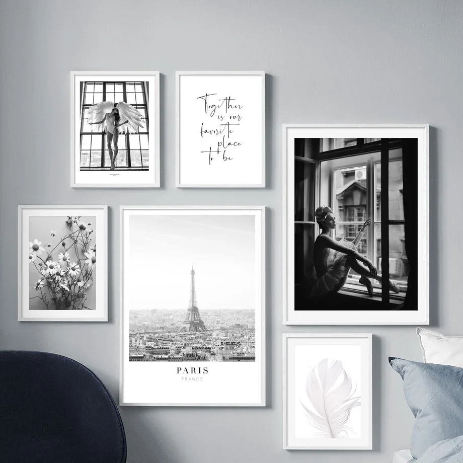 Парижская башня девушка окно перо пейзаж стены Искусство Холст Живопись скандинавские плакаты и принты настенные картины для декора гостиной Материал: экологически чистый хлопок Характеристика: солнцезащитный, водонепроницаемый, никогда не выцветает Тип качества: 100% Высококачественные плакаты на холсте