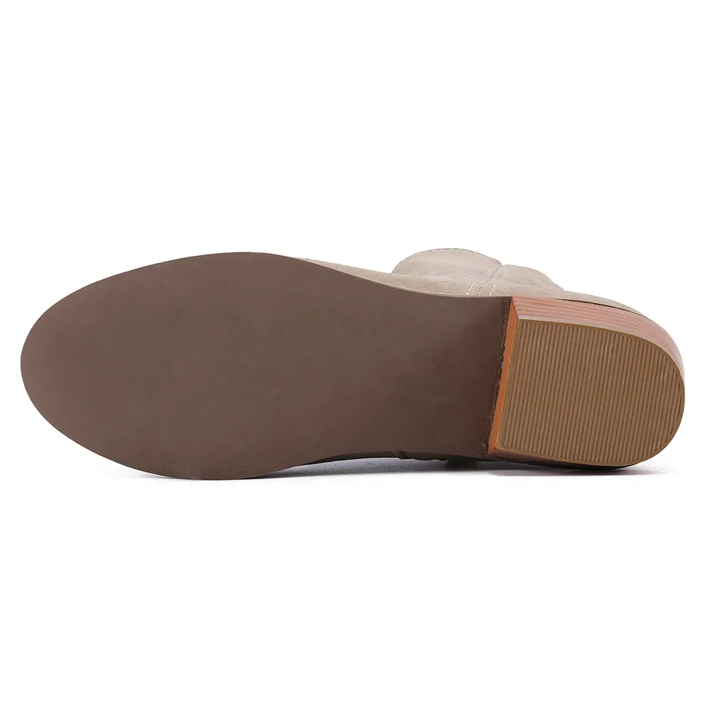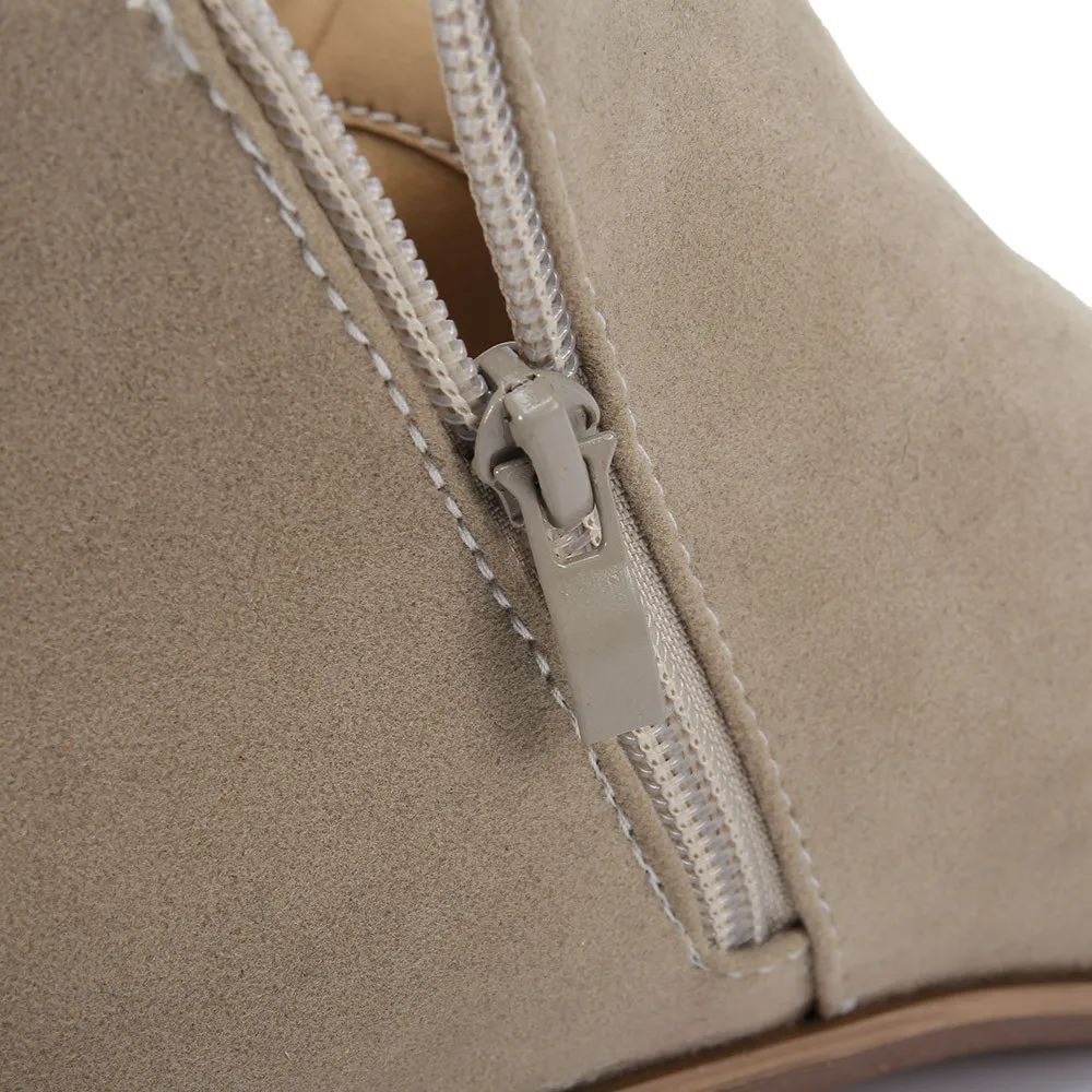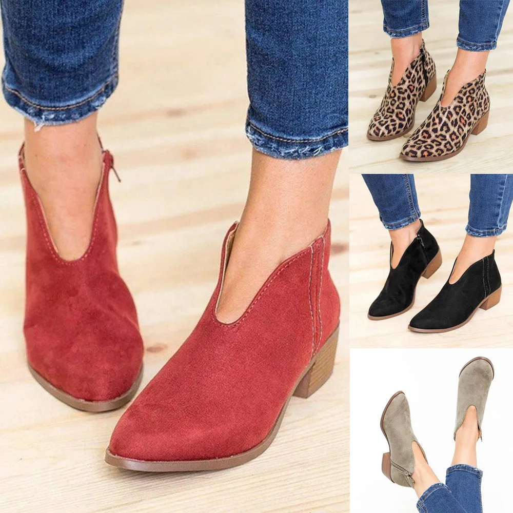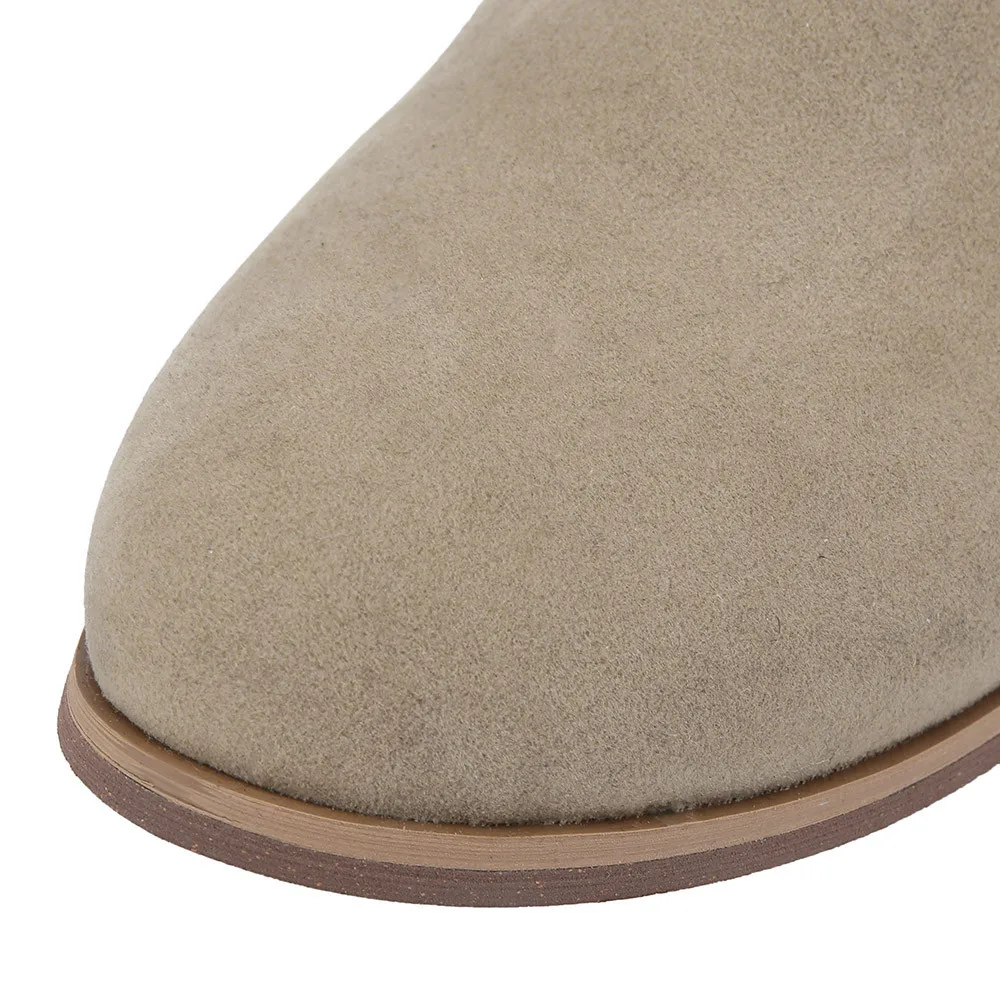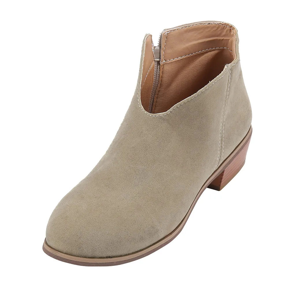 Женские замшевые ботинки на квадратном каблуке в стиле ретро; ботинки на молнии; обувь с круглым носком