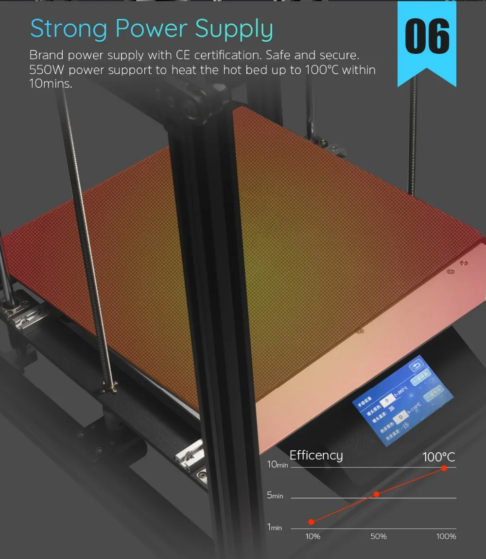 Температура управления: Экструдер: Макс 260 °C Горячая кровать: Макс 100 °C