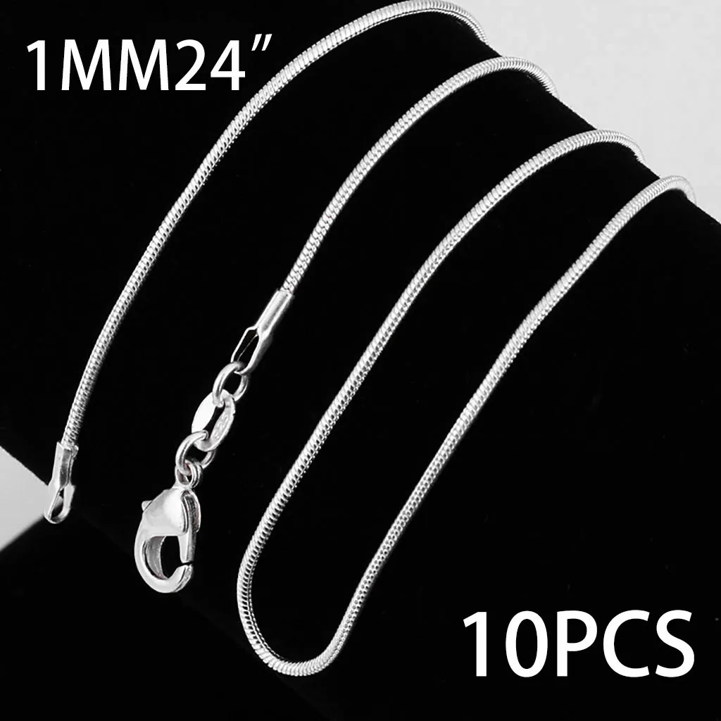 10 шт 925 пробы Твердое Серебро 1 мм змеиная цепочка ожерелье 16-28 дюймов