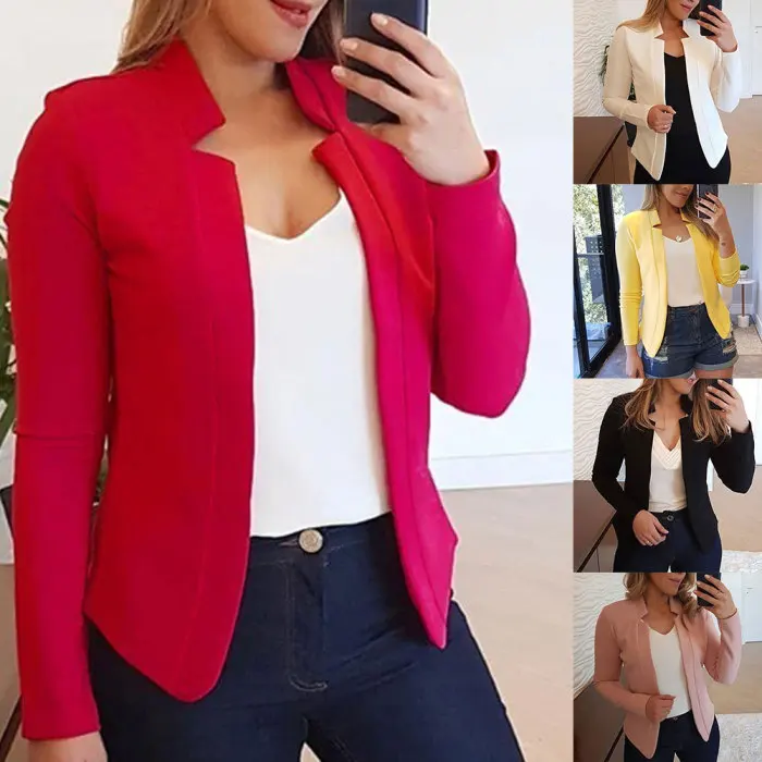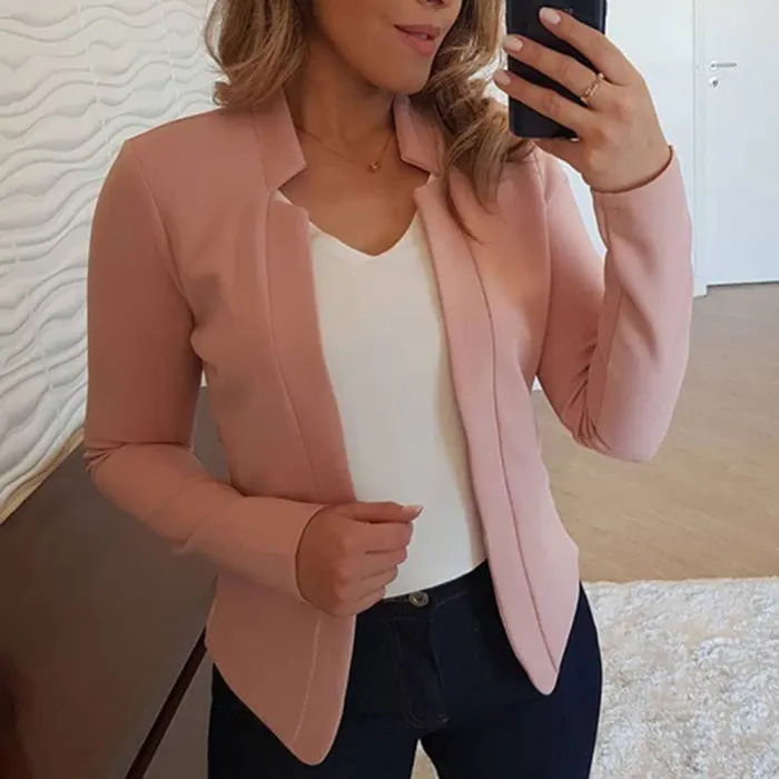 Женский блейзер, Тонкий Блейзер с длинным рукавом, однотонный офисный женский костюм, пальто, AIC88