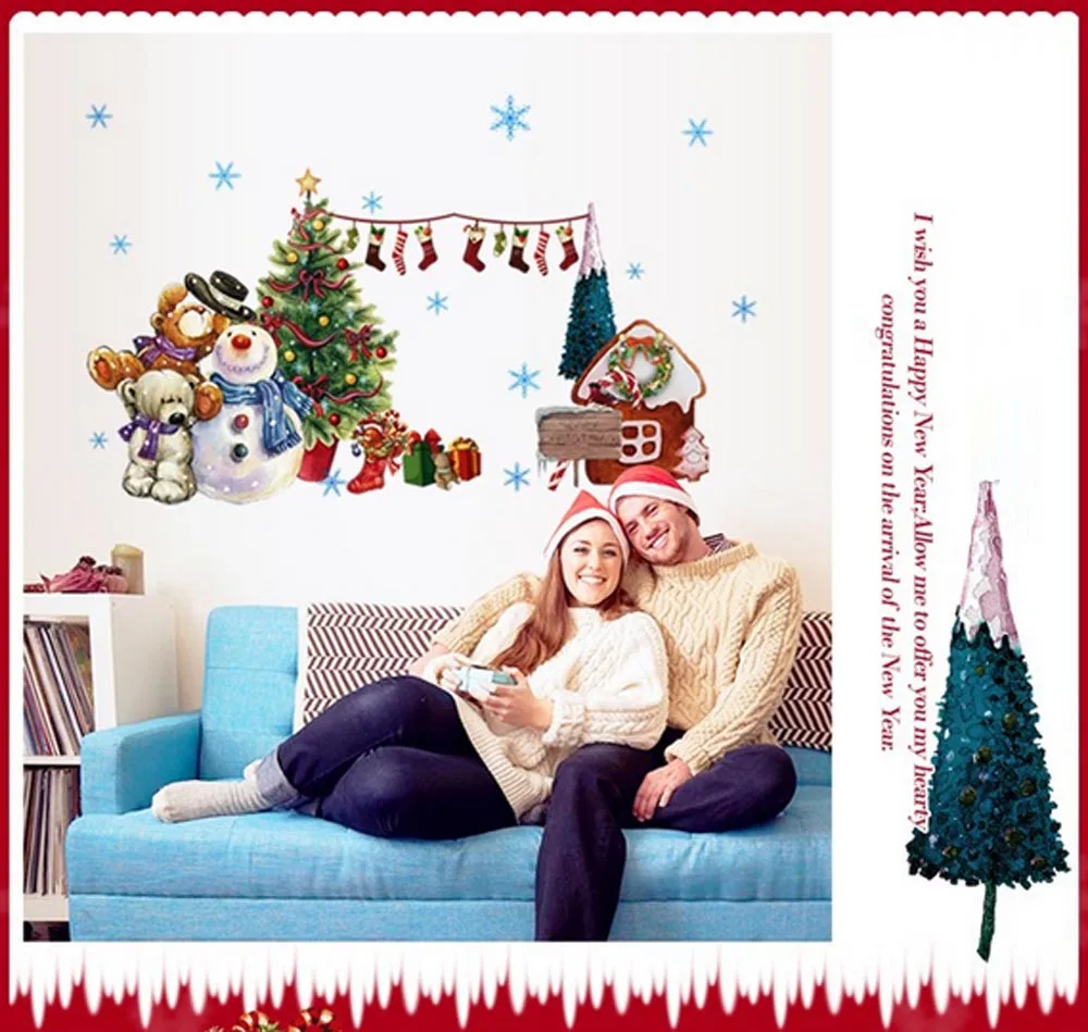 Рождественская елка рождественский подарок Съемная Наклейка на стену искусство домашний декор наклейка