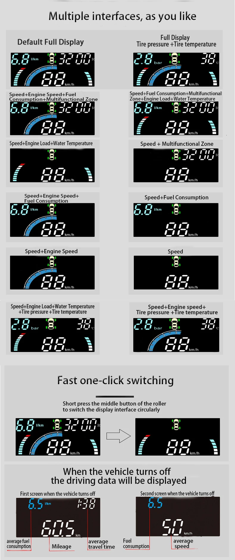 | Функция | Скорость отображения, расход топлива, об/мин... |