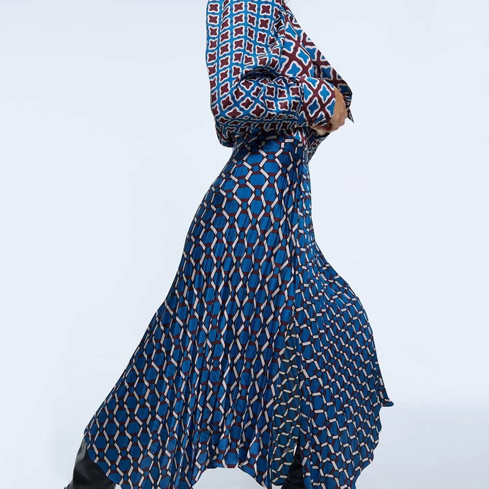 Женская винтажная плиссированная длинная юбка CR 2020 летняя трапециевидная до