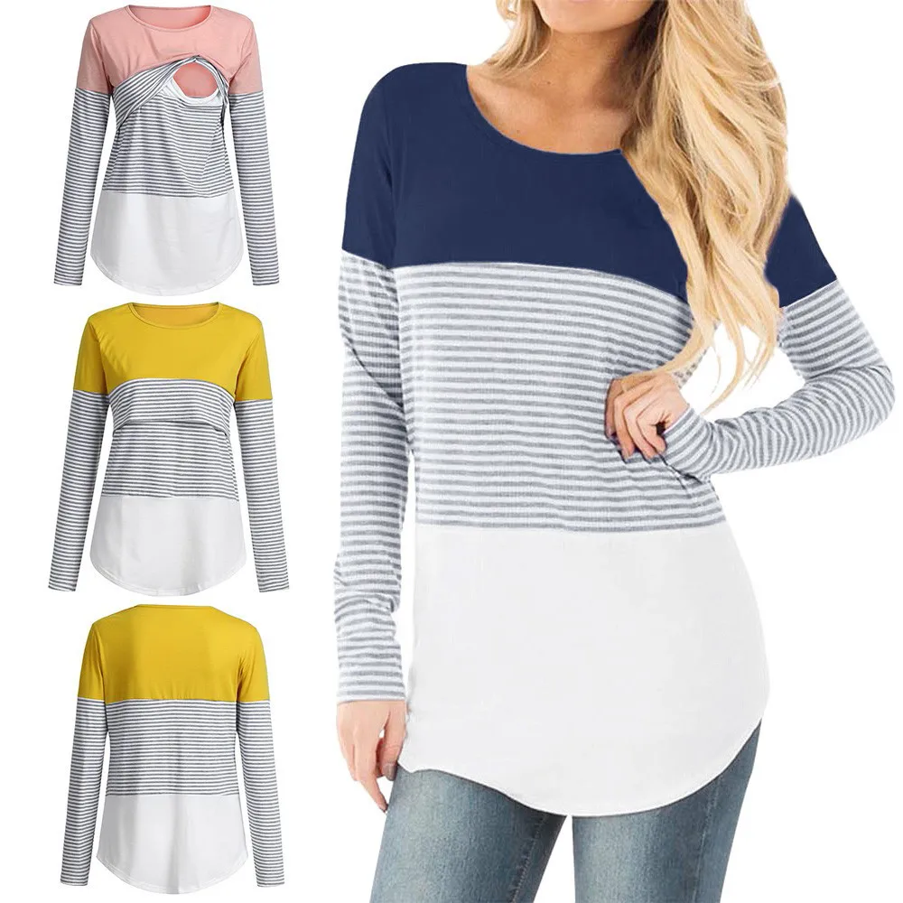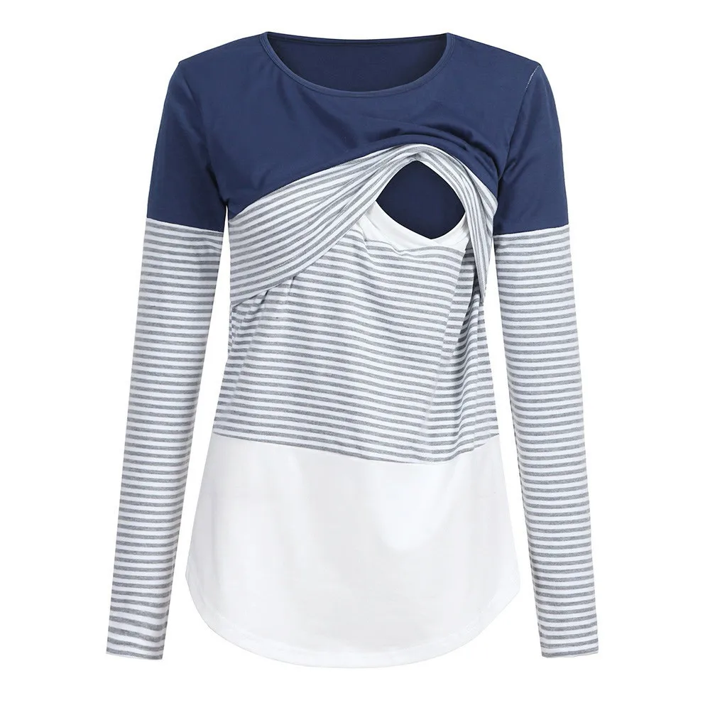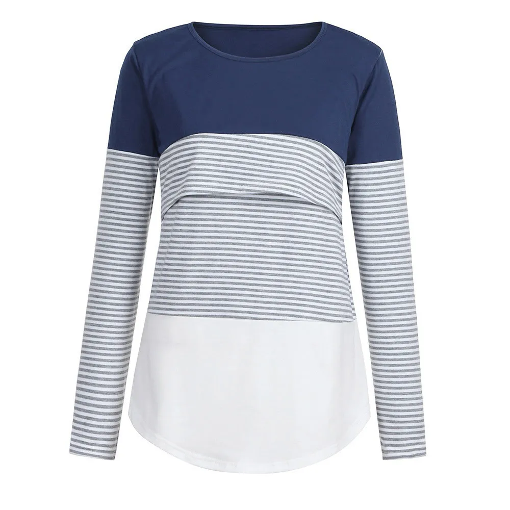 Женская полосатая блузка с длинными рукавами для беременных