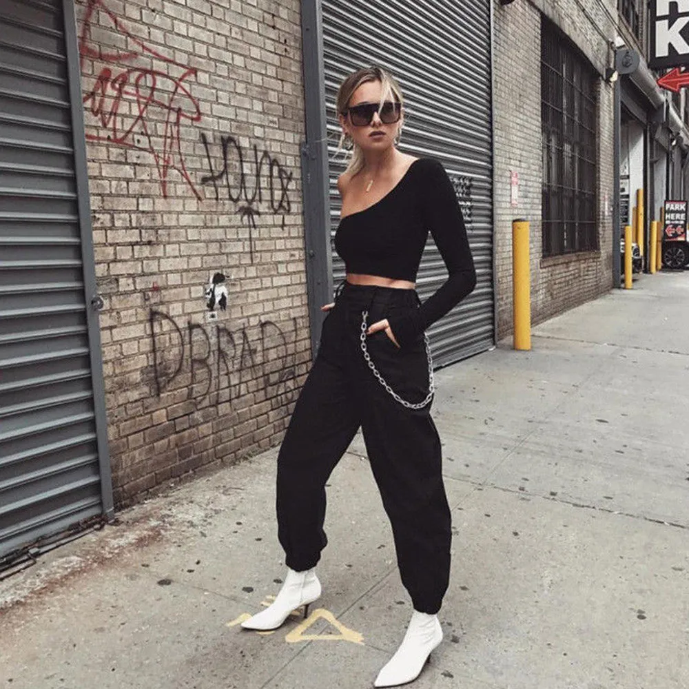 Женские свободные брюки с высокой талией длинные однотонные большого размера в