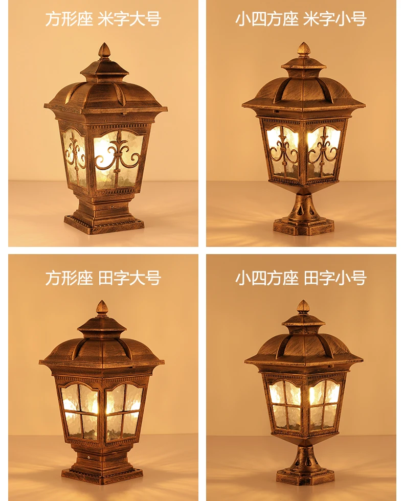 Европейский столбик, фары, черные ретро украшения дверей, водонепроницаемая лампа для коридора, улицы, страны, светодиодное стекло, ландшафтное освещение Размер: как показано на рис. (Пожалуйста, свяжитесь со службой поддержки клиентов для получения подробной информации) Материал: алюминий, стекло Цвет: бронза, черный Светильник источник света: e27 Без светильник лампочка