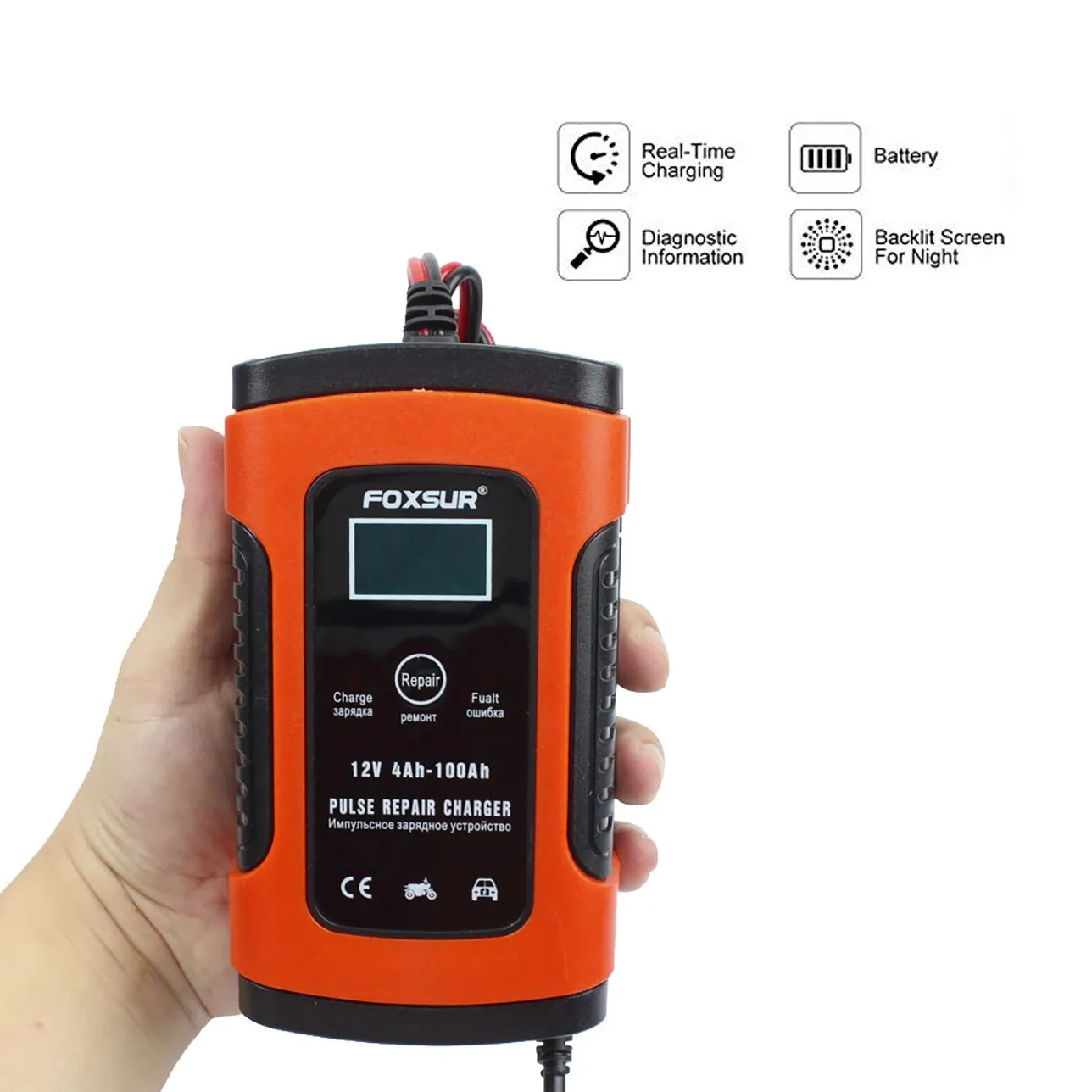 Автомобильное зарядное устройство и держатель батареи, 6A 12V полностью автоматический с ЖК-экраном