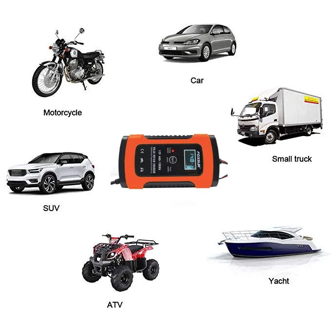 - 5 Ампер Автоматическое зарядное устройство и сопровождающее устройство, широко используется на автомобилях, лодках и другом оборудовании. Диагностирует и устраняет проблемы с батареей и продлевает срок службы батареи для автомобилей, мотоциклов, газонокосилок или лодок.