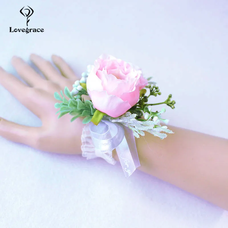 Розовый белый Шелковый цветок браслет на запястье корсаж Свадебный браслет для подружек невесты свадебные свидетельские аксессуары