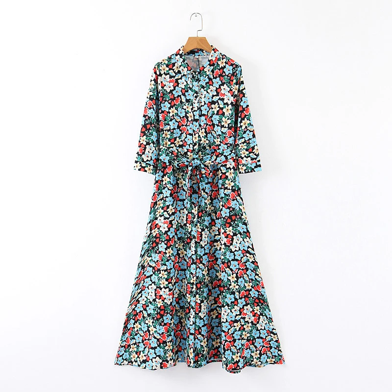 Платья макси для женщин модные женские Вечерние с цветочным принтом и круглым
