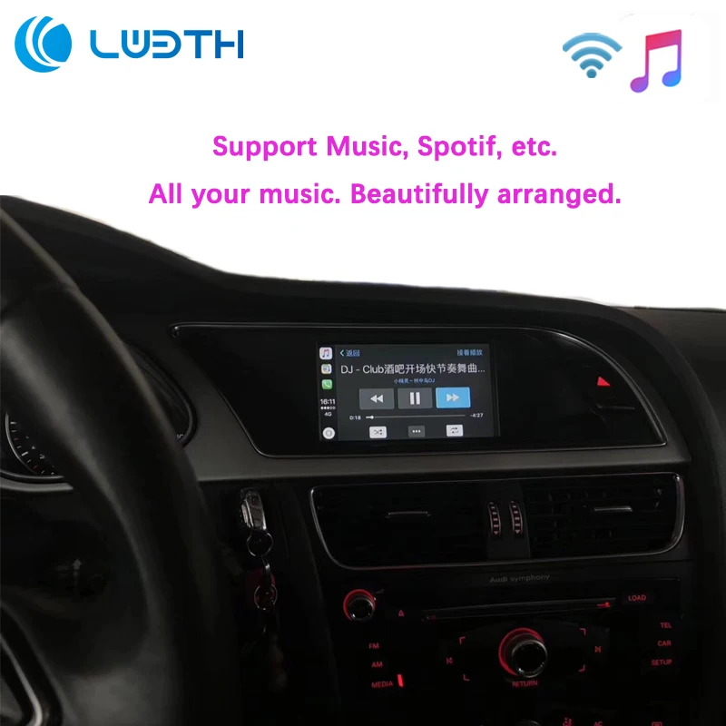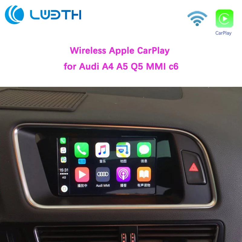 Поддержка модели 2010-2016 A4 A5 Q5 MMI 3G/3G Plus, MMI Basic 2009-2011 A6 A7 A8 c6, характеристика продукта 1. Поддерживает автоматическое подключение к автомобилю, чтобы включить Carplay 2. Поддержка управления рукояткой рулевого колеса 3. Совместимость с iPhone iOS 13, основная функция 1. Работает с беспроводным Apple CarPlay, сопряжение через Bluetooth, передача через Wi-Fi. 2. Также работает с проводным CarPlay, сначала выключите Wi-Fi, подключите через кабель освещения (проводной Держите ваш телефон заряжен одновременно) 3. Зеркальное отображение на Android-Link для телефонов Android (ссылка для загрузки) 4. Приложения для gps-навигации, Google Maps, Waze и Apple Maps доступны, информация о реальном времени 5. Музыкальные яблоки Spotify,Apple Music, Amazon и т. Д. Аудио через фабрику Audi media, текст на дисплее для некоторых приложений. 6. Голосовое управление, говоря: "Эй, Сири..." 7. Aftermarket фронтальная/задняя/360 Входная камера. (Поддерживаются динамические линии наведения) 8. USB флеш-накопитель для воспроизведения музыки и видео с помощью подключения USB-порта от CarPlay kit 9. Регулировка эквалайзера. Лучшее качество звука. Свободно Выбирайте свой любимый стиль (поп, рок, мягкий, стандартный...) 10. Полная кнопка управления OEM.