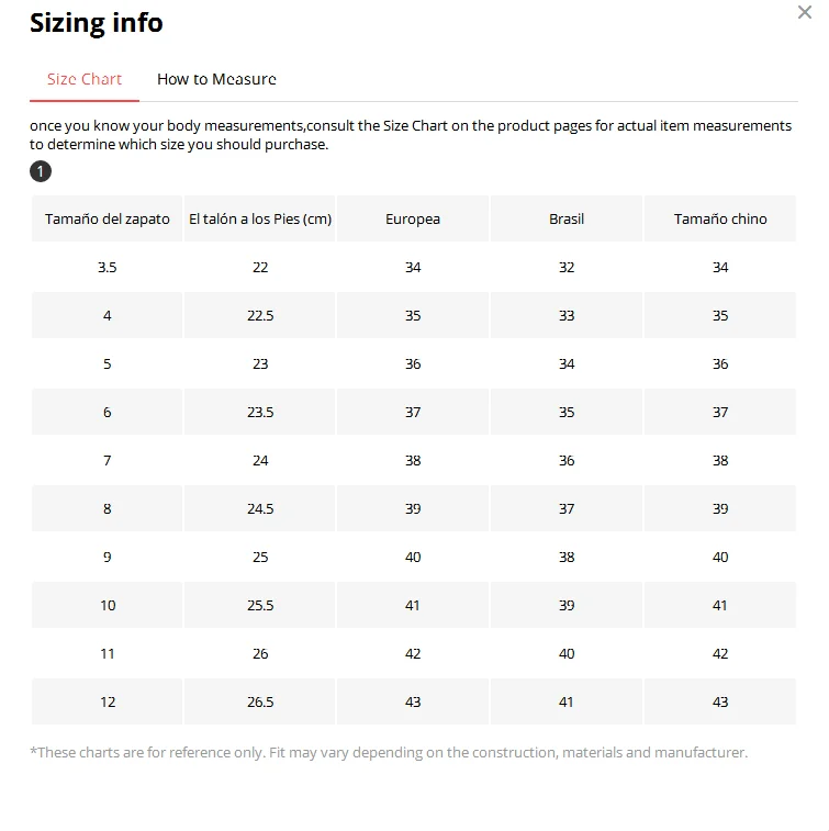 Опишите размеры продукта, включая различные размеры skus.