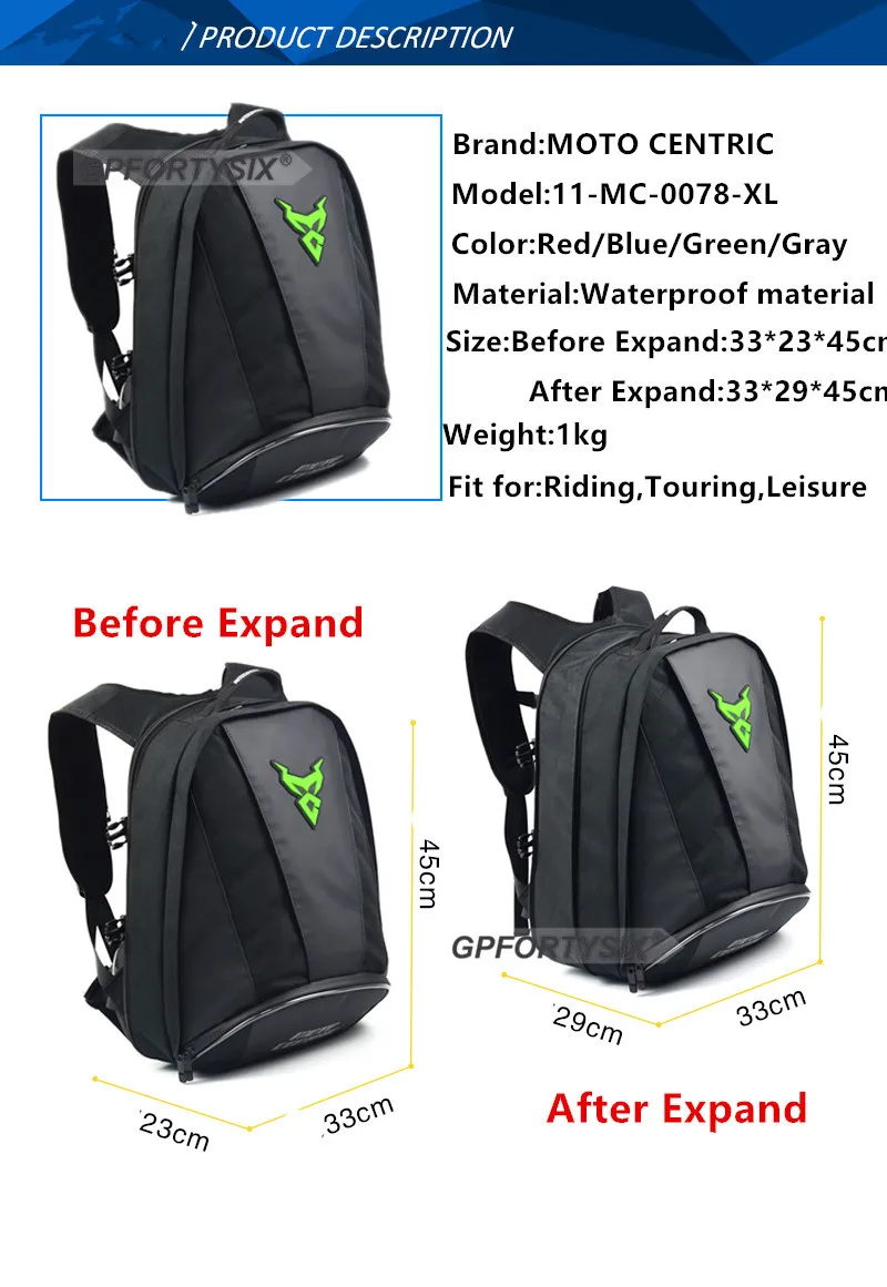 Параметры: Модель: MC-0078-XLMaterial: Оксфорд clothsize: около 33*29*45 см Вес: около 1kgfeatures: MC-0078 выполнена из высокого качества водонепроницаемый ткань Оксфорд, который является износостойким, водонепроницаемый и прочный. В большой емкости можно хранить мобильные телефоны, одежду, ноутбуки, шлемы и многое другое. В рюкзаке есть двойная молния, которая легко скользит и прочна. Он спроектирован с пряжкой на груди и талии, чтобы рюкзак был трудно встряхнуть во время езды. Примечание: по этой ссылке представлены два модели рюкзаков (большого и маленького размера), четко ознакомьтесь с заказом!
