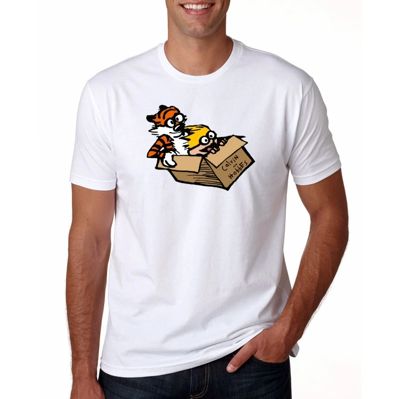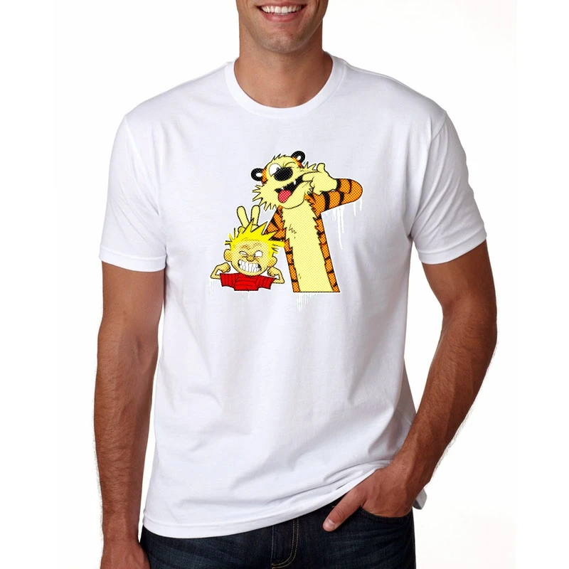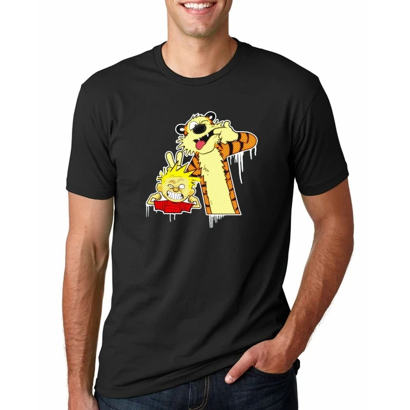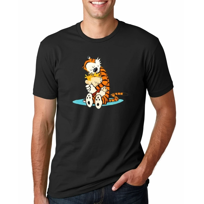 Кельвин и Хоббс 4 Новинка Горячая Распродажа Черная Мужская футболка хлопок