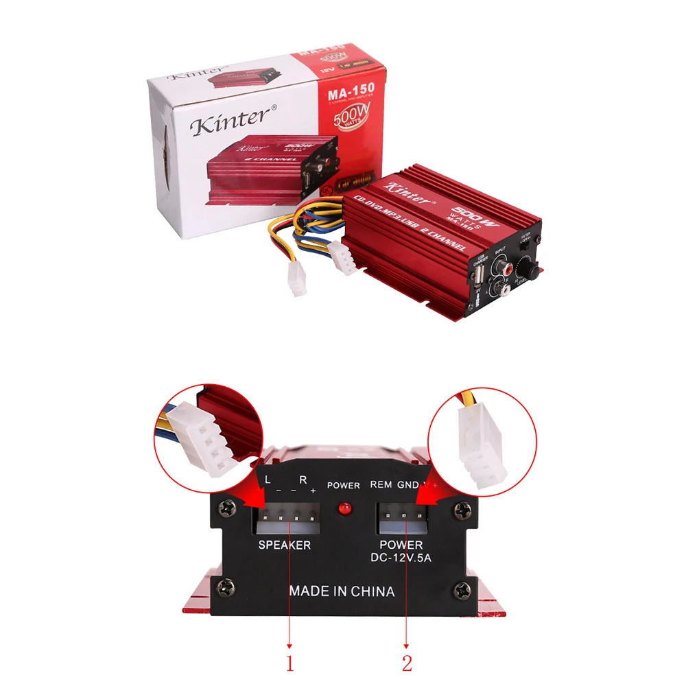 1. 2-канала Hi-Fi усилитель, вставить мощность светильник (красный).